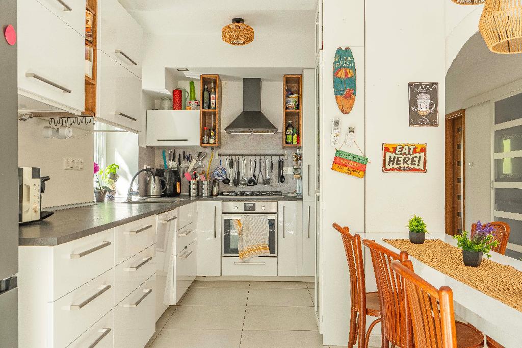 4 hálószoba, terasszal egybenyitható nappali, 2 fürdőszoba, külön WC-k.