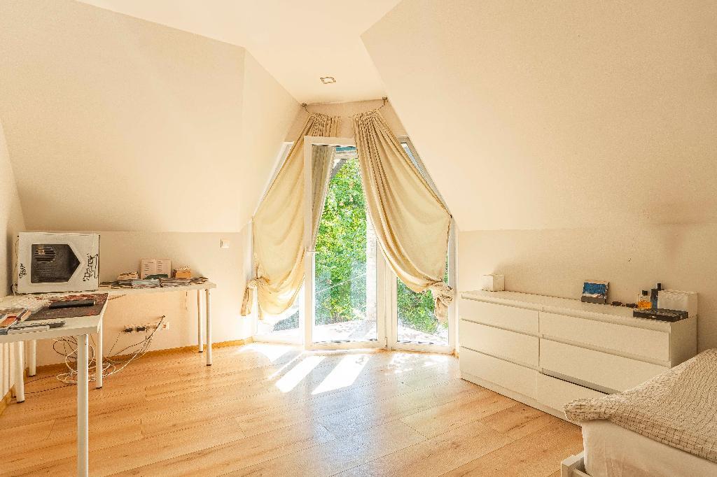 Az emeleti szobából teraszajtón át külön ki/bejárás lehetséges a kertbe