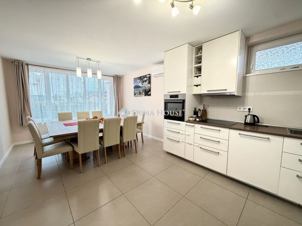 Eladó egy igényes kivitelezésű, mediterrán stílusú családi ház egy folyamatosan fejlődő, nyugodt, rendezett környezetben. A ház megtervezésekor kiemelt szerepet kapott a komfort és az energiahatékonyság: a hálószobák tökéletes tájolásának köszönhetően a nyári csúcs melegben sem éri őket közvetlen napsütés, így ott valóban nincs szükség hűtő-fűtő klímára.A konyha-nappali térbe került egy nagy teljesítményű klíma, amely a központi részt könnyedén temperálja, de a ház jól átgondolt kialakítása miatt ritkán van rá szükség.A bruttó 205 m²-es otthon 3 tágas hálószobát, világos nappali-étkező-konyha részt, kamrát, külön gardróbhelyiséget, 2 fürdőt, valamint gépesített, minőségi konyhát kínál. A burkolatok, a belső anyaghasználat és a részletmegoldások prémium kategóriát képviselnek.Az ingatlanhoz tartozik egy 42 m²-es dupla garázs, valamint egy 20 m²-es fedett, nyitott terasz, amely közvetlenül a gondosan beültetett, teljesen intim kertre néz. A tujasor, a rendezett pázsit és a természetközeli hangulat valódi biztonságos komfortzónát ad.Az épület grafitos szigeteléssel ellátott, napelemrendszerrel felszerelt, amely a jelenlegi fogyasztást szinte teljes egészében kitermeli. Ennek köszönhetően a fenntartási költségek különösen kedvezőek.A környék rendezett, folyamatosan fejlődik, az infrastruktúra néhány perces sétával elérhető. Az ingatlan így nemcsak kényelmes otthon, hanem hosszú távon is értékálló választás.A környezet értéke stabilan növekszik, így a ház nemcsak otthonként, hanem befektetésként is kiváló választás.