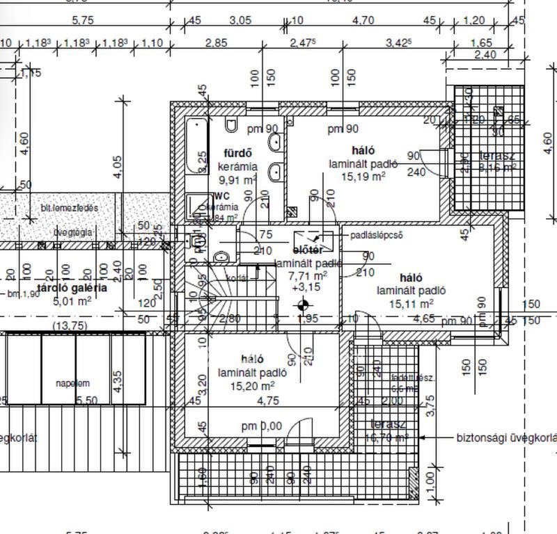 Gépészet: Modern hőszivattyús technológia, minden helyiségben padlófűtés és egyedileg szabályozható légkondicionálás (külön termosztátokkal) biztosítja a komfortot.