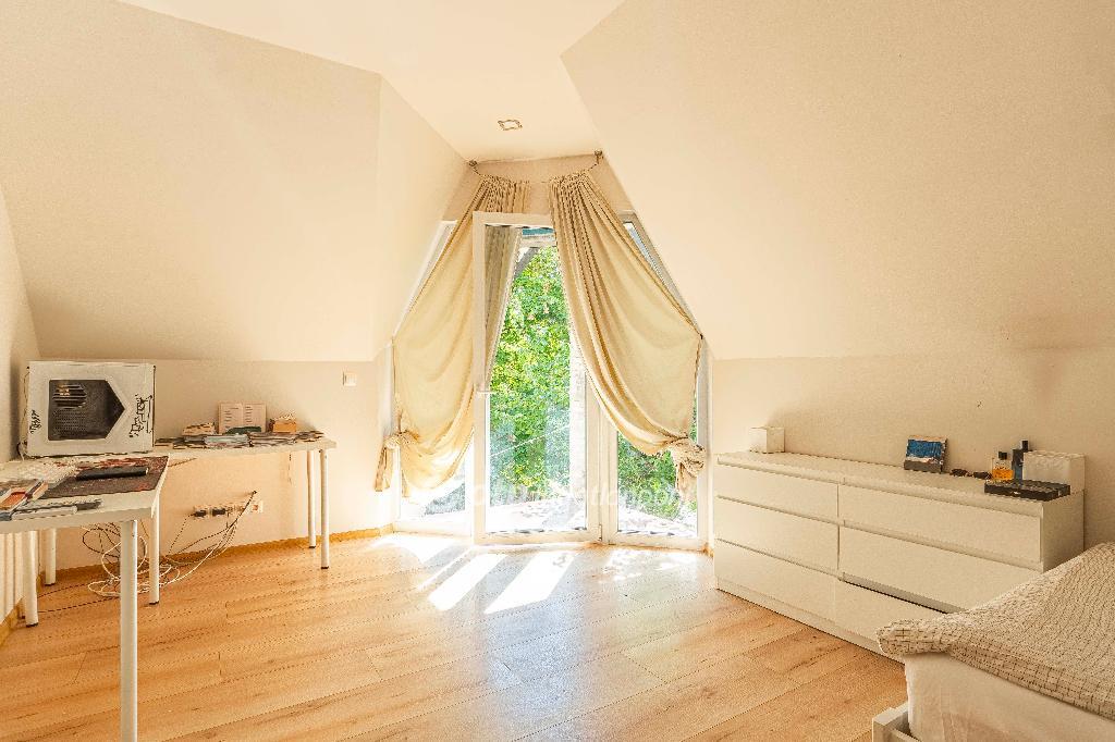 Az emeleti szobából teraszajtón át külön ki/bejárás lehetséges a kertbe