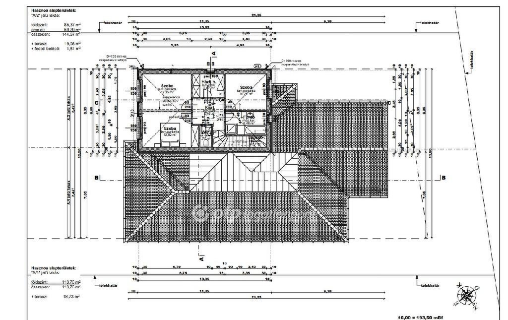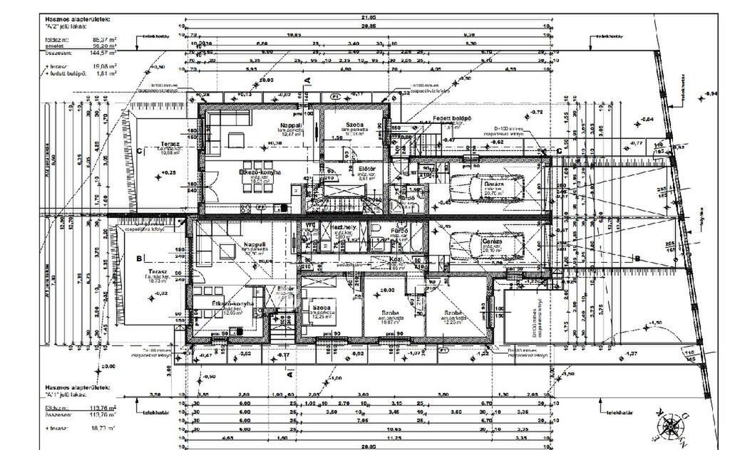 A ház nappali + 4 szobás, saját 480 m2-es telekrésszel és garázzsal, ideális választás többgyermekes családnak vagy azoknak, akik szeretik a kényelmes, jól átgondolt tereket.