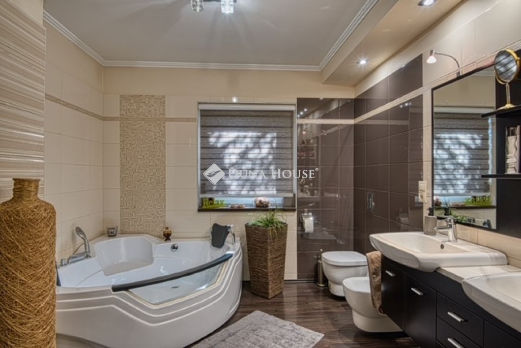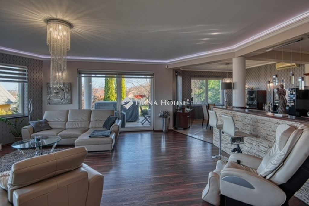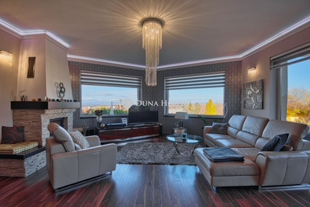 Veresegyház Hegyek részén luxus családi ház, nagy telek, örök panoráma nappali + 4 szoba, szauna, jakuzzi, panorámás teraszok, dupla garázs, udvari beálló!