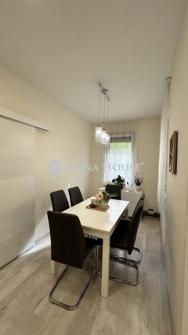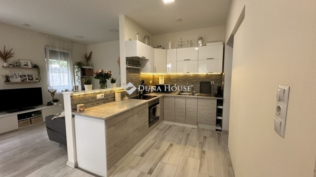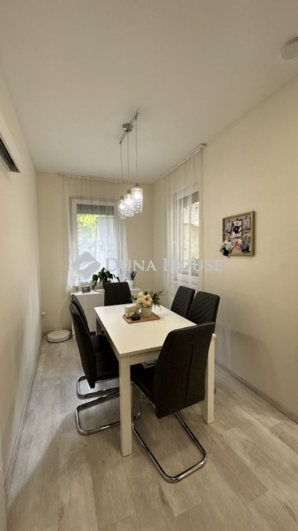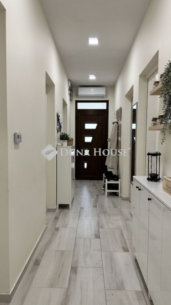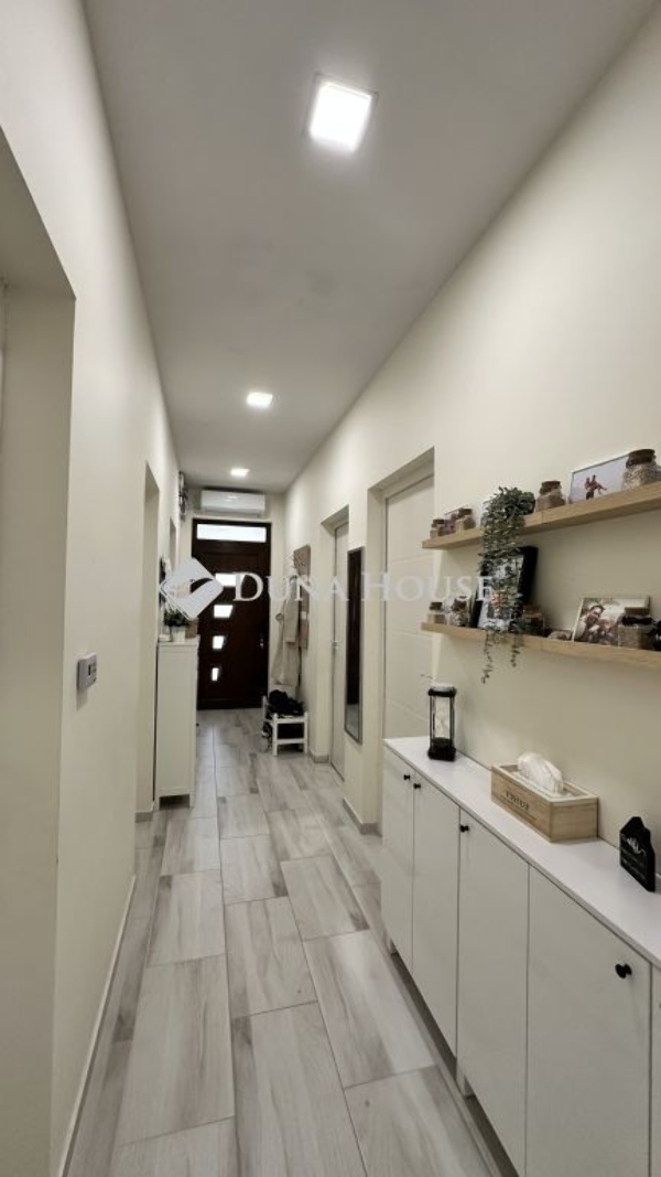 VERESEGYHÁZ TAVAK RÉGIÓBAN ELADÓ 2019-es építésű acélvázas technológiával készült könnyűszerkezetes családi ház. Az ingatlan tájvédelmi terület közvetlen szomszédságában, egy csendes, aszfaltozott kis utcában található, remek lokációval rendelkezik. A helyi buszjárat mindössze 2 perc sétával, vonat, távolsági busz, óvoda, általános iskola, gimnázium, játszóterek 5-15 perc sétával, autóval 2-5 perc alatt érhetők el. Lidl, orvosi rendelő, piac, uszoda, termálfürdő mindössze 5-10 perc autóval. Az ingatlan főbb jellemzői:A telek összközműves, 440 m2, az előkert rendezett, díszcserjékkel parkosított, a hátsó kertben most fejeződött be az öntözőrendszer kiépítése. A kert végében egy 7 m2-es fészer kapott helyet, a kert gondozásához szükséges szerszámok tárolására. Az épület mellett 42 négyzetméteres Viacolor burkolatú kétautós kocsibeálló került kialakításra. A ház külső megjelenése mediterrán jellegű, nagyon jó állapotban van. Könnyűszerkezetes, acélvázas technológiával készült. Ez a technológia nálunk még kevésbé elterjedt, de igen kedvelt szerte a világon, az USA-ban és Kanadában a házak jelentős része így épül. A falak között 15 cm vastag kőzetgyapot szigetelés, a homlokzaton 12 cm vastag dryvit hőszigetelés van. A műanyag nyílászárók redőnnyel ellátottak. Az amerikai konyhás nappali közvetlen teraszkapcsolattal rendelkezik, a fedett teraszt a kerttől mindössze két lépcsőfok választja el. A konyhához kamra kapcsolódik. Ezeken kívül az ingatlanban három hálószoba, közlekedő, fürdőszoba WC-vel és egy külön WC is található. A fűtésről (padlófűtés) gáz cirkó és egy hűtő-fűtő klíma gondoskodik. Az ingatlan összhatása nagyon kellemes. Kívül az ápolt, rendezett kert és épület, belül a barátságos, otthonos környezet gondoskodik a lakók jó közérzetéről. Kiválóan alkalmas kisgyermekes családoknak, illetve bárkinek, aki kedveli a természet közelségét és a teraszon elfogyasztott kávéhoz a madárcsicsergést. Nézze meg! Fedezze fel! Találja meg itt álomotthonát!Hiteligény esetén bank független hitelügyintézésben tudok segíteni. Kérdés, megtekintési igény esetén keressen bizalommal! Hibás hirdetés bejelentése