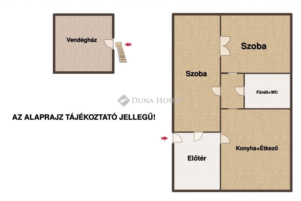 Az ingatlan 30 m² alapterületű mobilházból áll, amely egy 20 m²-es, könnyűszerkezetes lakrésszel került bővítésre, így összesen 50 m² lakótér áll rendelkezésre.