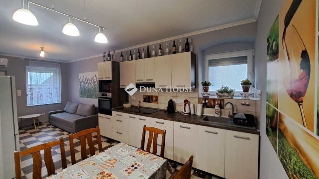 Eladó felújított családi ház Villány központjában kiváló elhelyezkedés, azonnal költözhető otthonVillány központjában eladó egy 70 m²-es, átgondolt elrendezésű családi ház, amely egy 1209 m²-es telken helyezkedik el. Az ingatlan az elmúlt években felújításon és átalakításon esett át, így új tulajdonosa egy rendezett, jó állapotú otthonba költözhet.A felújítás során megtörtént a villany- és vízvezetékek cseréje, a csatornarendszer kiépítése, új burkolatok kerültek beépítésre, megújult a fürdőszoba és a konyha, valamint a nyílászárók cseréje is megtörtént. A modern, háromrétegű ablakok redőnnyel és szúnyoghálóval felszereltek, a padlásfödém szigetelése pedig hozzájárul az energiahatékony működéshez.A ház elosztása praktikus és élhető: konyhaétkezőnappali alkotja a központi életteret, emellett két tágas hálószoba és egy fürdőszoba biztosítja a kényelmet. A kellemes hőérzetről hűtő-fűtő klímaberendezés és elektromos radiátorok gondoskodnak. A ház alatt pince található, ahol a mosókonyha is kialakításra került. Az udvarban három különálló tárolóhelyiség áll rendelkezésre, a telek rendezett, jól használható, ideális pihenésre, kertészkedésre vagy akár további elképzelések megvalósítására.Az ingatlan elhelyezkedése kiváló: Villány rendezvénytere mindössze 200 méterre található, bölcsőde, óvoda és iskola pedig az utcában elérhető. A központ közelsége ellenére a környezet nyugodt és élhető.Ideális választás kisgyermekes családoknak, nyugdíjasoknak, illetve befektetőknek is, akik Villány frekventált elhelyezkedését kihasználva vendégház kialakításában gondolkodnak.Megtekintésért és további információért keressen bizalommal.