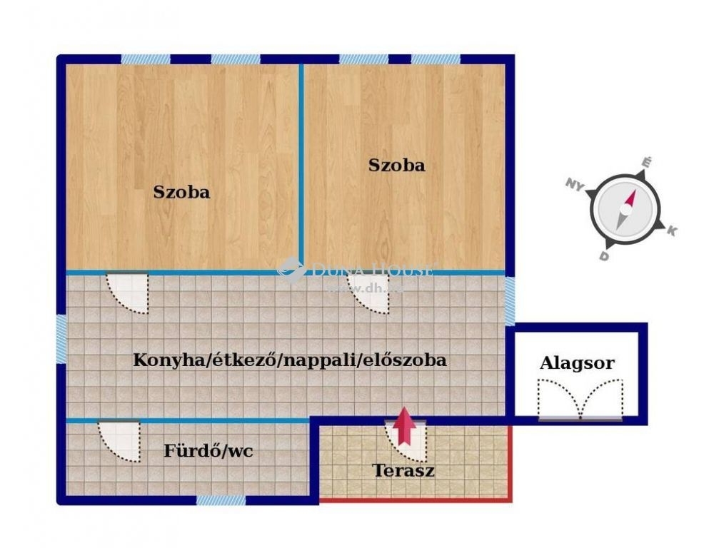 Az otthon 3 hálószobával és egy tágas, 46 m²-es amerikai konyhás nappalival rendelkezik, kamrával, 2 fürdőszobával és külön WC-vel. Az átgondolt alaprajz lehetőséget ad egy 4. hálószoba kialakítására is. A kényelmet dupla garázs és külön tároló teszi teljessé.