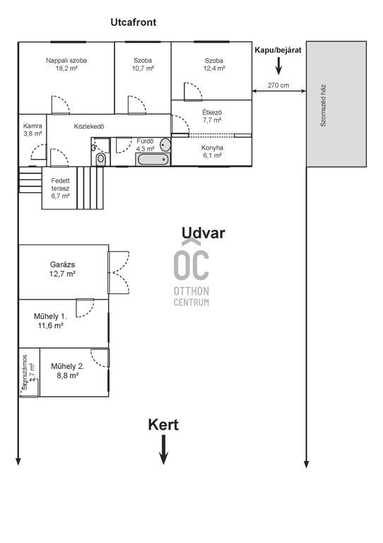 - A tégla építésű, bruttó 85 m2-es (nettó 77 m2) ingatlan 457 m2-es telken helyezkedik