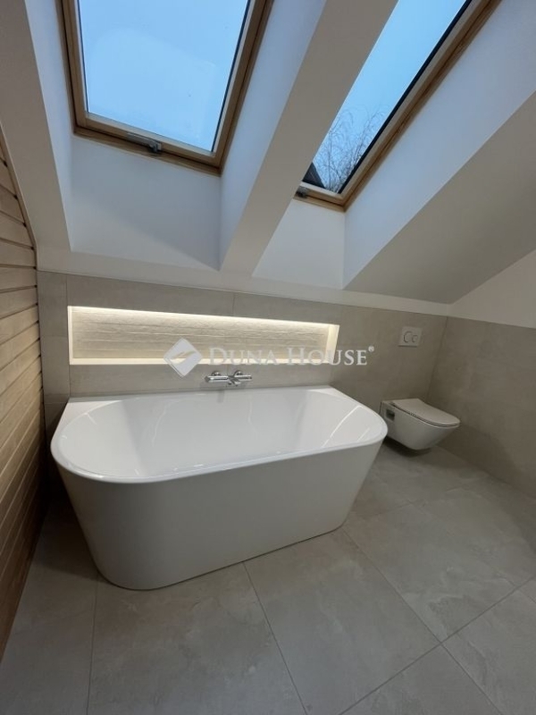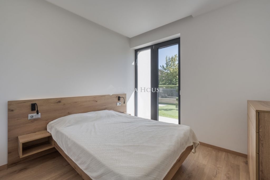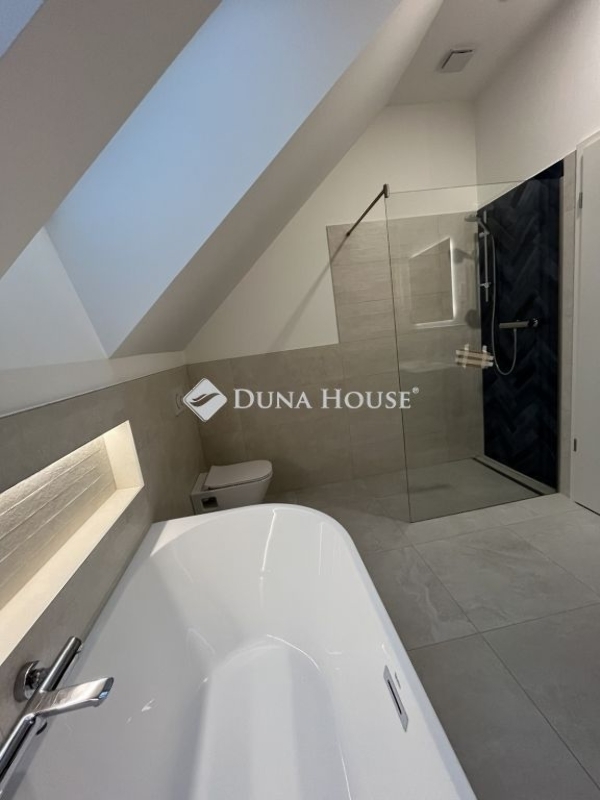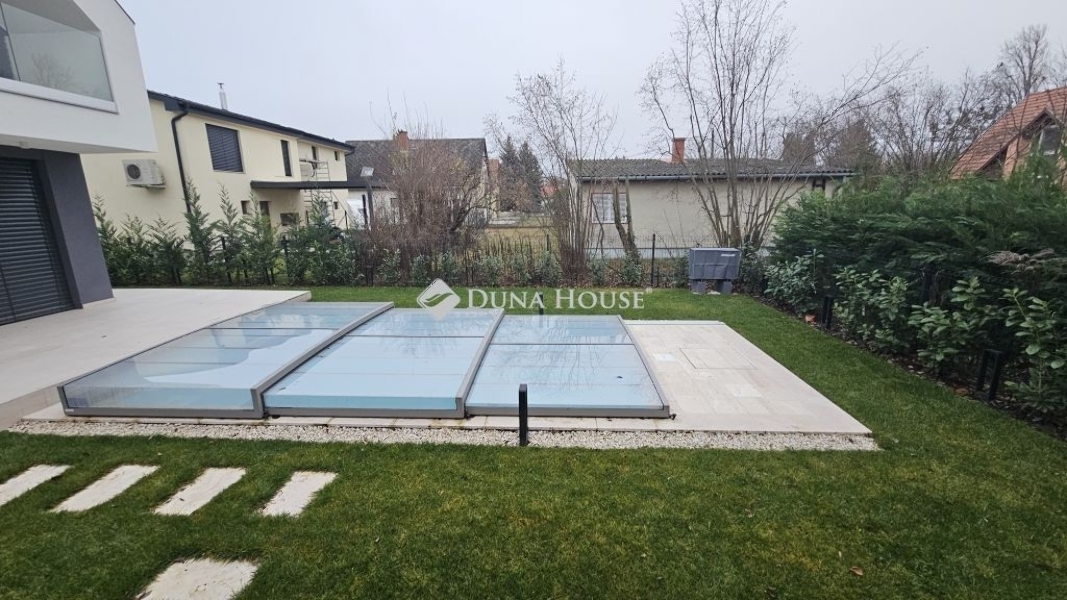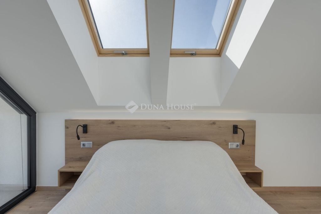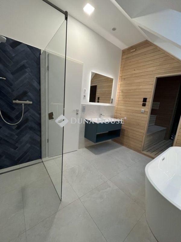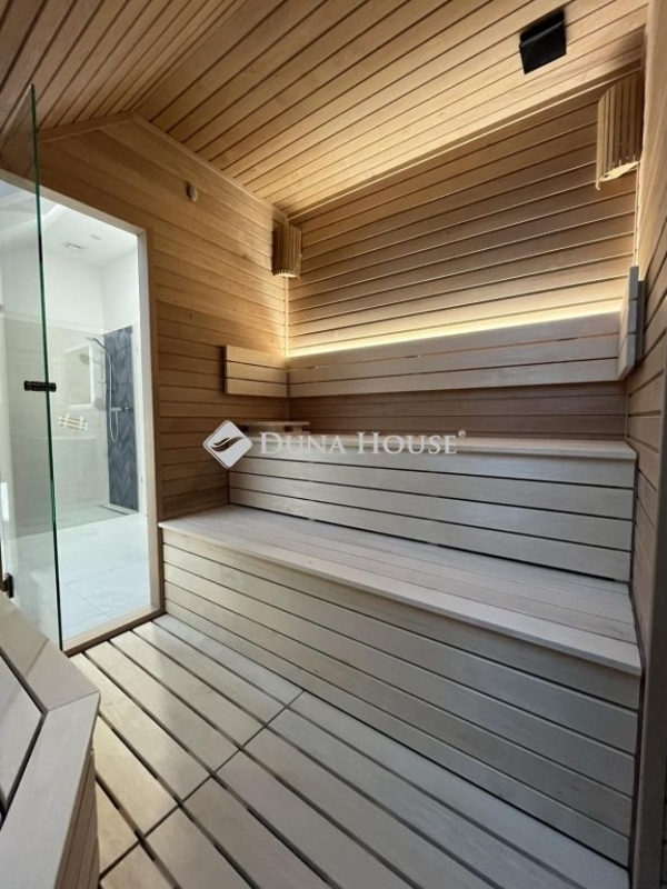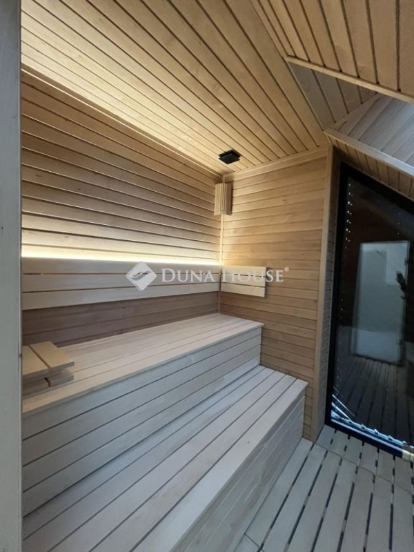 Exkluzív modern otthon Zamárdiban medencével és szaunávalEz az ingatlan a letisztult formavilágot, az egyedi építészeti megoldásokat és a magas műszaki tartalmat ötvözi egy igazán különleges otthonban.A ház Zamárdiban, a Balaton partjától mindössze 3 perc sétára, nyugodt, családias környezetben helyezkedik el.A kétszintes épület 107,23 m² hasznos alapterülettel rendelkezik, elosztása kiválóan átgondolt, összesen 4 szobával:1 vendégszoba a földszinten3 hálószoba az emeletenFöldszint:A földszinten egy tágas, világos nappaliétkezőkonyha található egy légtérben, közvetlen kertkapcsolattal. A tér különlegessége a 3 méteres tolóajtó, amely teljesen megnyitja a belső teret a kert felé. A mérnöki pontosság jegyében a tolóajtó pontosan a medencével szembe nyílik, mely tükrözi a ház részletes kidolgozását és precizitását. Ezen a szinten kapott helyet továbbá:külön vendégszobavendégfürdőszobagépészeti / háztartási helyiség mosó- és szárítógép számáraelőszoba, exkluzív olasz dizájnvakolattal és rejtett ajtókkalEmeletAz emeletre egy egyedileg gyártott, acélvázas tölgyfa lépcső vezet üvegkorláttal. A lépcsőfordulóban megvilágított természetes kő dekoráció teremti meg az érkezés különleges hangulatát.Az emeleten található:3 hálószoba, melyből kettő teljes berendezéssel, a szülői hálószobához saját fürdőszoba tartozikegy tágas családi fürdőszoba épített zuhanyzóval és káddal. A térben álló fürdőkád elhelyezése lehetővé teszi, hogy a nagyméretű tetőtéri ablakokon keresztül akár éjszaka is a balatoni égbolt látványában gyönyörködhessünk.Műszaki felszereltség és komfortAz otthon komfortjáról modern hőszivattyús rendszer gondoskodik:nyáron mennyezethűtéstélen padlófűtésminden helyiség külön vezérelhető, távolról irányítható termosztáttalA nagy üvegfelületek, az emelt belmagasság és a kedvező tájolás egész nap természetes fénnyel tölti meg a házat. A nyári felmelegedés ellen motoros alumínium zsalúziák biztosítanak védelmet.A homlokzaton 20 cm, a tetőszerkezetben 30 cm vastag kőzetgyapot szigetelés került beépítésre.Belső berendezés és extrákA teljes bútorzat egyedi tervezésű, magas minőségű asztalosmunkával készült.Az ingatlan egyik különlegessége a panorámás finn szauna, amely akár 5-6 fő számára is kényelmes használatot biztosít.Kert és kültéri élményekA gondosan kialakított udvar valódi privát pihenőkert:3 × 5,5 méteres medence, saját hőszivattyús fűtéssel és hűtésselgrillezőterületelszeparált pihenőterasz motoros pergolávalautomata öntözőrendszer fúrt kútróldísz- és térvilágítás, távolról vezérelhető kültéri fényekteljes körbekerítés babérmeggy sövénnyelParkolás és biztonságudvari beálló 1 autónakmotoros kapuelektromos autótöltőriasztórendszer és kamerarendszerA környék kifejezetten csendes és biztonságos.Érdeklődjön elérhetőségeimen, és tekintse meg személyesen ezt a balatoni hangulatú otthont.+36 (70) 580 9443kovacs.magor.istvan@dh.hu