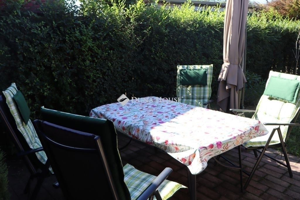 A 2005-ben épült lakóparkban található ez a kétszintes, újszerű, hangulatos lakás, amelyben az alsó szinten az amerikai konyhás nappali mellett fürdőszoba, valamint egy 12 m²-es fedett terasz került kialakításra kertkapcsolattal.