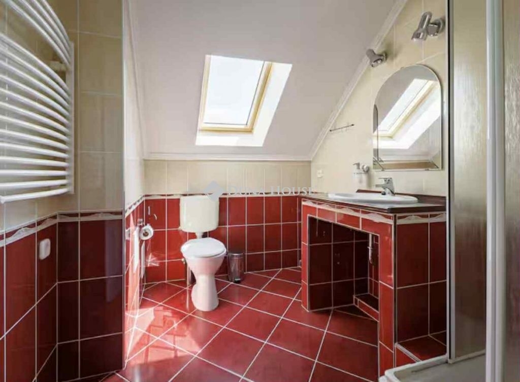 Az épület 2000-ben épült, azóta rendszeresen karbantartott és korszerűsített: klíma, napelemrendszer, teljes felszereltség, saját garázs és fedett kiülő tartozik hozzá. A bejárat és a lépcsőház közös, amelyet a másik ikerfél tulajdonosával együtt használnak.