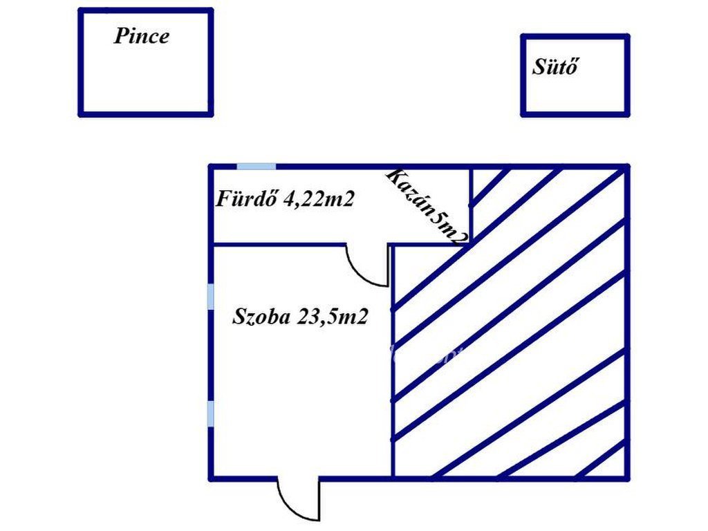 Az alagsorban egy tágas szoba, fürdőszoba és a gépház található.