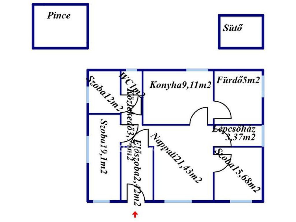 A masszív, beton alapra épült, B30-as téglaház három szintje kiváló elosztású: