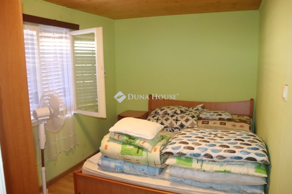 Balatonkeresztúron, egy csendes mellékutcában eladó egy nyaraló besorolású ingatlan, ami két épületből áll. A nagyon szépen felújított balatonmáriafürdői szabadstrand 600 m sétára található.A jelenlegi tulajdonosok a telek hátsó részén található 46 nm-es épületben laknak, míg a telek elején található 38 nm-es épületet kiadják. Minden közmű az ingatlanokban található. A fűtés kedvezményes, H-tarifás áram segítségével, klíma berendezésekkel működik.A nagyobb épület helyiségei: nappali konyhával, étkező, hálószoba, kamra, háztartási helyiség, zuhany és wc.A kisebb épület helyiségei: konyha étkezővel, zuhanyzó, wc, előszoba, 2 db szoba. A vendégházhoz kapcsolódik egy fedett terasz, illetve egy fedett autóbeálló is, illetve két, zárható kerti tároló is.A kert kevés munkával karbantartható.A telek másik felén az ikerszomszéd épületei találhatók, hasonló elrendezésben.Egyeztetett időpontban hétvégén is megmutatom.