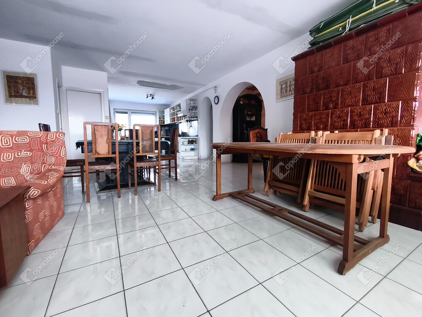 A komfort pedig adott: gázkazános fűtés, és ami igazán ritka előny, mindkét szinten padlófűtés, ami egyenletes meleget és modern, kényelmes érzetet ad az egész háznak. A ház déli tájolású, így napfényes, világos, egész nap kellemes atmoszférát biztosít. A hangulatról pedig egy szép cserépkályha gondoskodik, ami nemcsak praktikus, hanem igazán otthonossá teszi a teret.