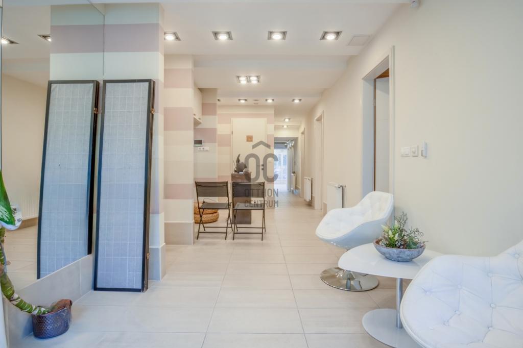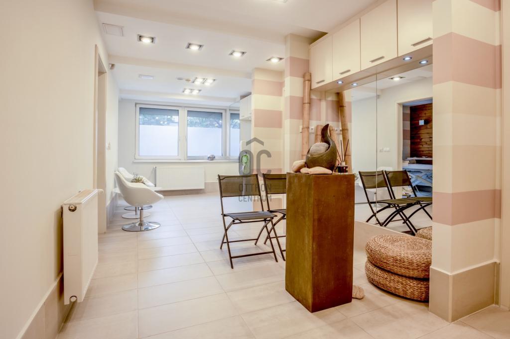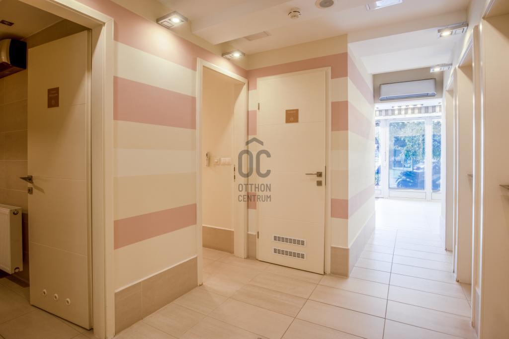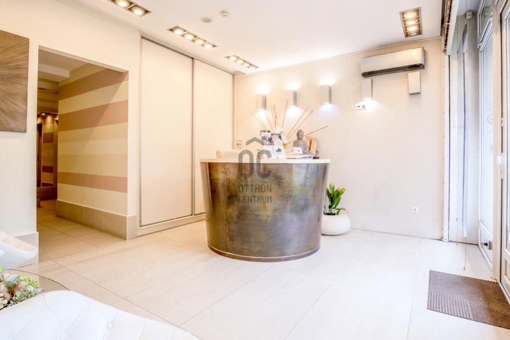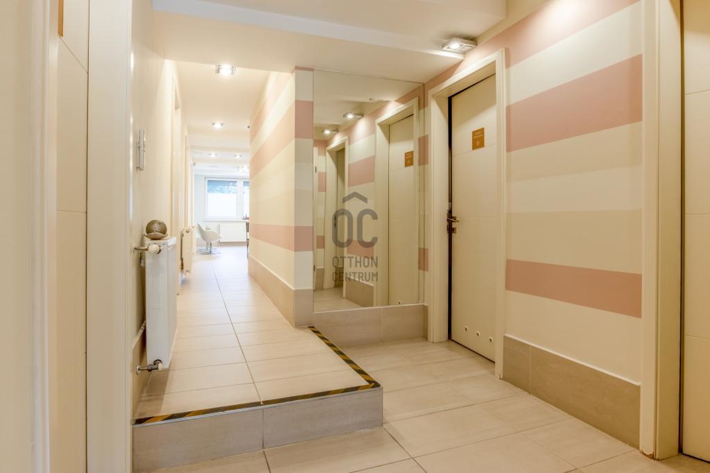 Eredetileg egy 68 m2-es lakás és egy 61 m2-es üzlethelyiség összenyitásával kialakított, jelenleg szépségszalonként üzemelő üzlet.