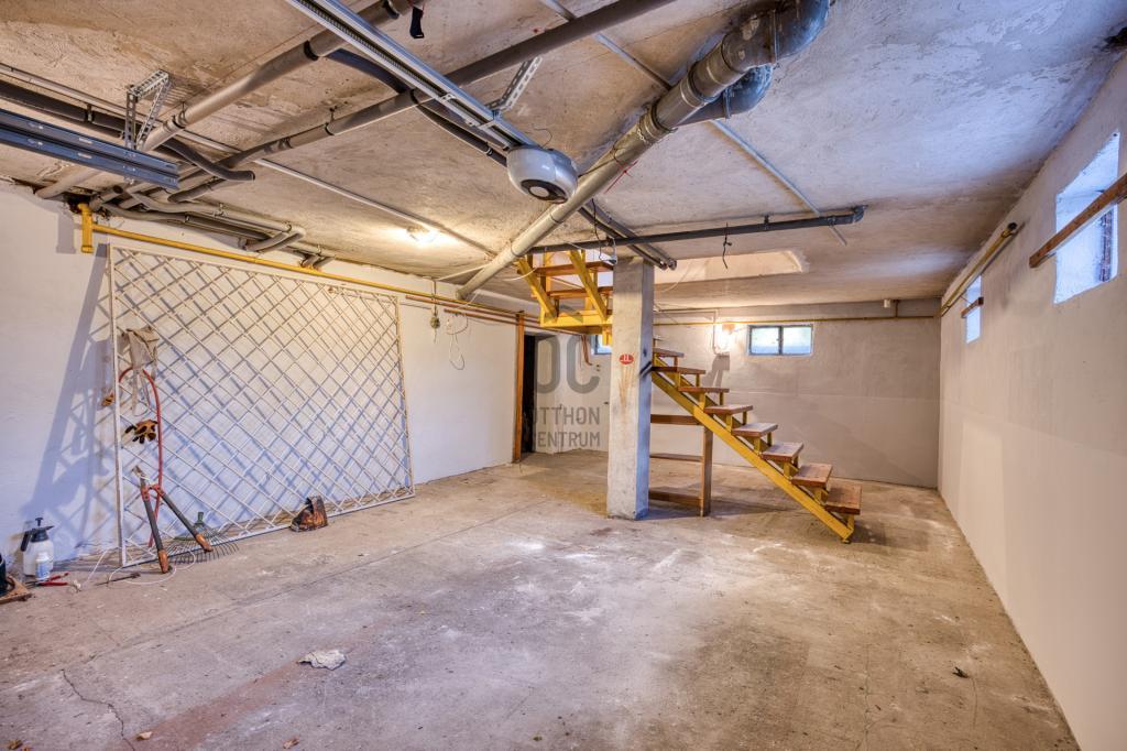 A pince szinten garázs (elektromos kapuval), valamint két további helyiség található. A kertben akár két autó fedett beállása megoldott.
