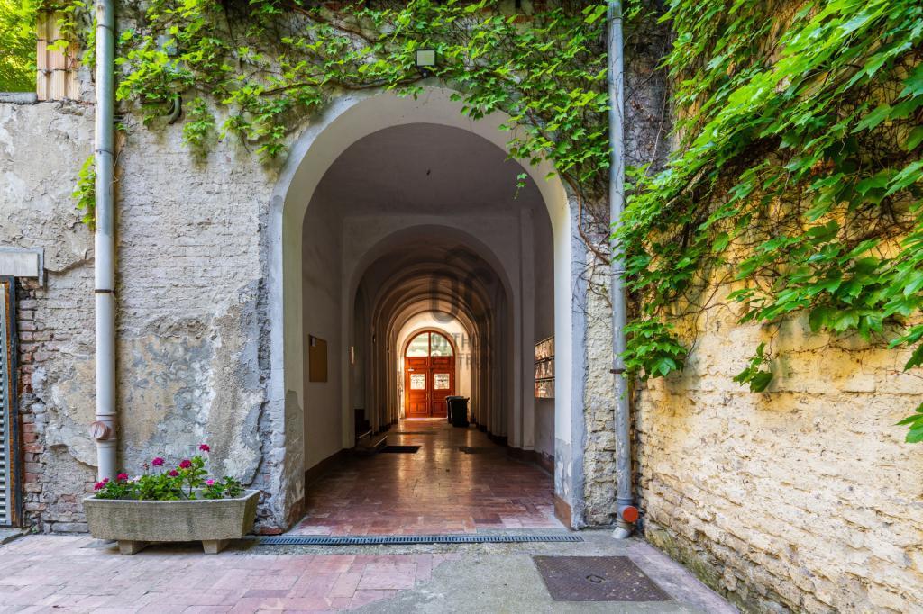 - Kijárat a történelmi hangulatú, pesti stílusú belső udvarra.