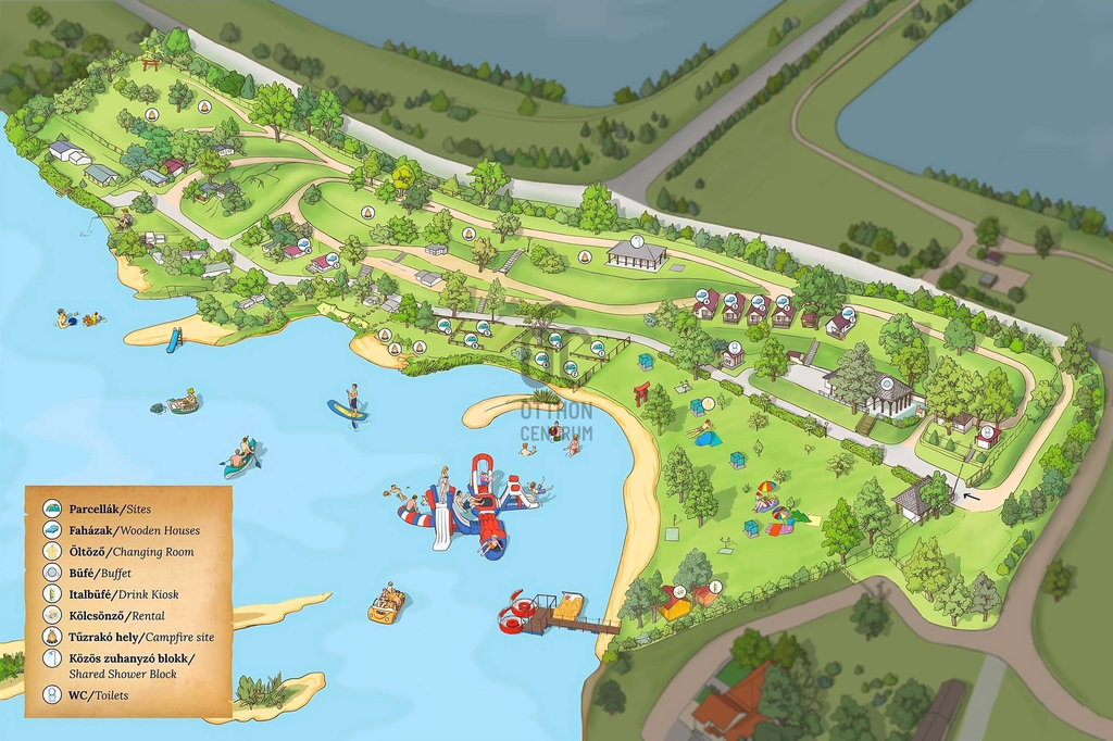 DÉLEGYHÁZÁN KÖZVETLEN VÍZPARTI KEMPING ÉS STRAND ELADÓ – KÖZEL 4 HEKTÁR, BEJÁRATOTT MŰKÖDÉS