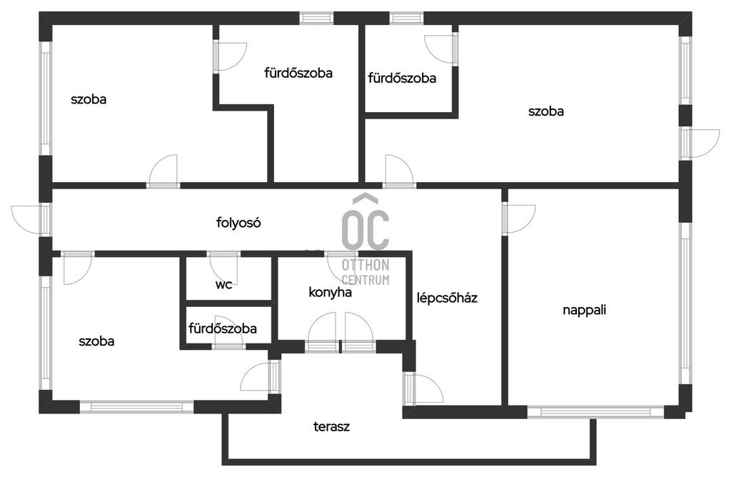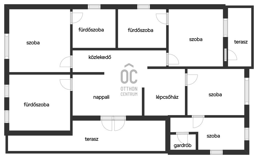 - TETŐTÉR: nappali, 2 egymásból nyíló hálószoba, 2 fürdővel és konyhafülkével ellátott hálószoba, 1 nagy fürdőszoba, 2 erkély