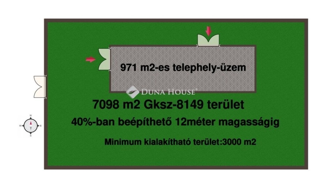 A 7098 m2-es terület 40%-ig, 12 méter magasságig beépíthető, és további, legalább 3 000 m²-es részre is bontható.