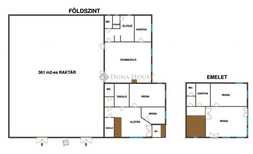 Raktár/csarnok terület: 361 m² (könnyűszerkezetes)