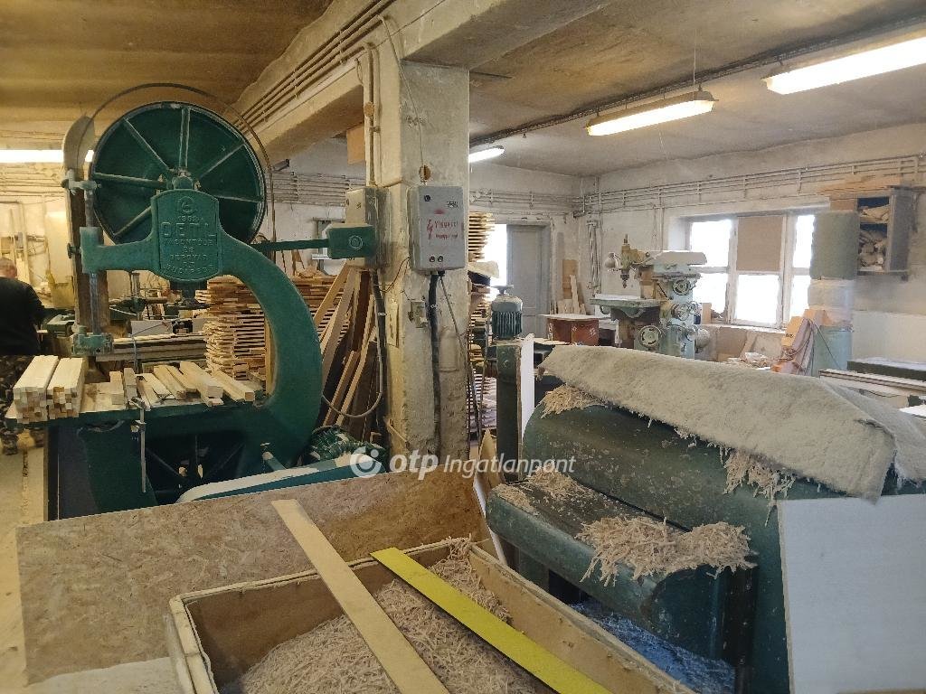 A beépített alapterület: 996 m2. Építmények : faipari megmunkáló kézi- és gépműhely, bútorlapvágó és egyedi bútorgyártó csarnok, iroda és szociális épület, fűrészpor leválasztó- és tároló épület, fedett-nyitott tárolók.