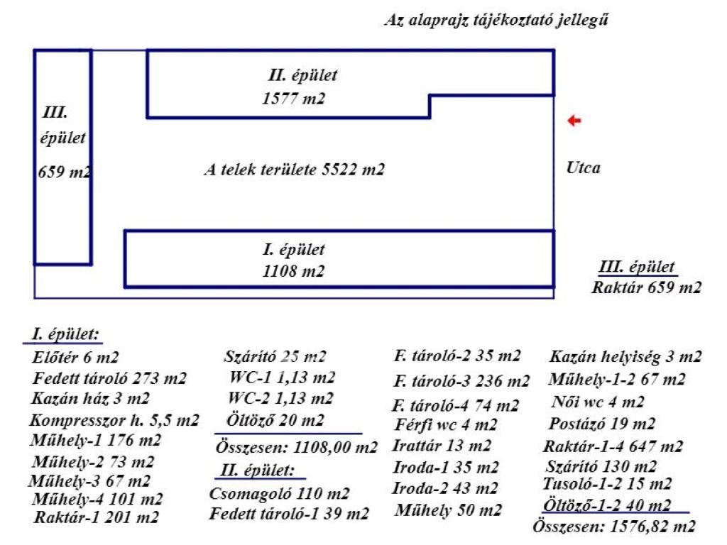 Békés vármegye, Mezőkovácsházán az Alkotmány utcában, összesen 3343 m2 beépített alapterületű IPARI TELEPHELY ingatlan ELADÓ. A telek területe 7167 m2. Az ingatlan elektromos áram (380 V is), vezetékes víz, vezetékes gáz közművekkel rendelkezik. A telephely elektromos áram igénye, napelem rendszeren keresztül biztosított. A telken 3 épület található. Épület1: 1108 m2 alapterületű több helyiségből álló épület, mely tégla falazatú alu tarpézlemezes tetőborítású. A helyiségek aljzata betonozott. A fűtése gázkonvektor, illetve mennyezeti elektromos fűtés. Épület2: hagyományos építési móddal készült, összesen 1577 m2 alapterületű, iroda és szociális funkcióval rendelkező épület: az irodák, női-férfi wc, előtér kerámia lap, a tusolók, öltözők mettlachi lap, a raktárak, tárolók, betonozott aljzatúak. Fűtése: gáz-cirkó rendszerű, radiátoros hő leadással. Épület3: 659 m2 alapterületű, acél tartóoszlop szerkezetű, szendvicspanel burkolattal, betonozott aljzattal. A telephely udvara aszfaltozott. Az ingatlan együttes, üzemnek, telephelynek, raktárnak, logisztikai központnak egyaránt tökéletes választás. A létesítmény jelenleg is működő cég tulajdonában van, opcionálisan a céggel együtt is megvásárolható. A feltüntetett irányár az ÁFÁ-t nem tartalmazza. Amennyiben érdeklődését felkeltettem, az ingatlan előre egyeztetett időpontban megtekinthető! Az ingatlan megvásárlásához kedvező feltételű, akár FIX kamatozású, hitel is igényelhető, melynek intézéséhez ingyenes segítség áll a leendő vásárlók rendelkezésére. Az OTP Ingatlanpont eladó és kiadó ingatlanokat keres, magyar és külföldi ügyfelei részére, teljes körű pénzügyi ügyintézéssel! Hibás hirdetés bejelentése