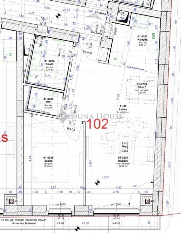 - 46,81 m² jól hasznosítható alapterület
