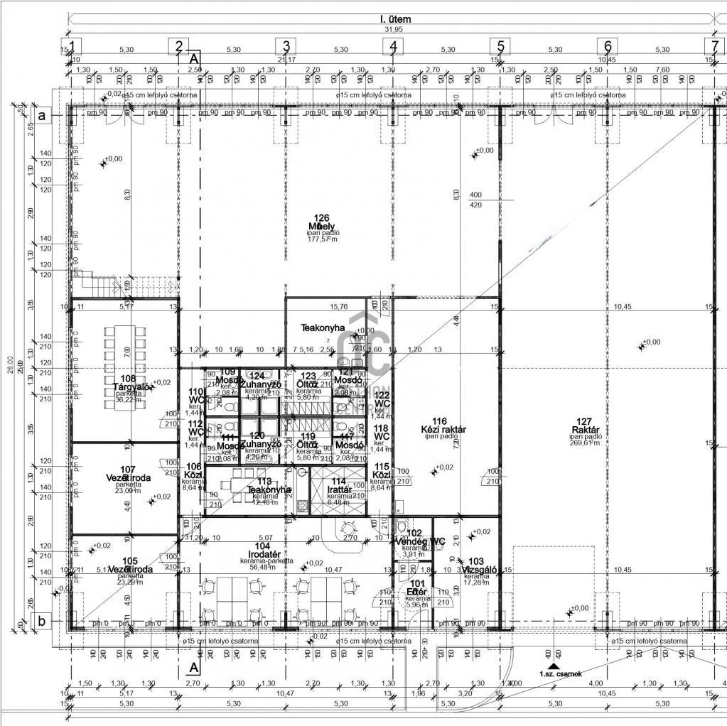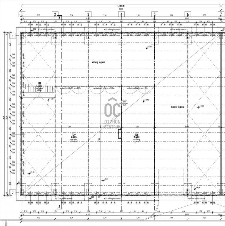 Csarnok alapterülete: 827 m² + 360 m² galéria