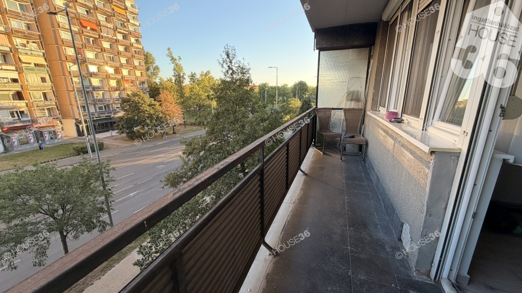 Eladó Kecskemét Belvárosában, a Petőfi Sándor utcán egy felújított, 47 m²-es panel lakás a 2. emeleten, 10 m²-es erkéllyel.
