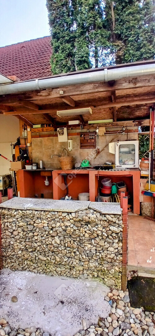 A fűtésről gáz cirkó kazán gondoskodik lapradiátorokon keresztül, míg a melegvíz ellátást villanybojler biztosítja. A 675 nm-es telken egy kisebb szerszámtároló is rendelkezésre áll. Parkolás szempontjából a ház különösen kedvező adottságokkal bír: egy zárt aknás garázs, valamint további két autó számára fedett kocsibeálló áll a tulajdonos rendelkezésére.