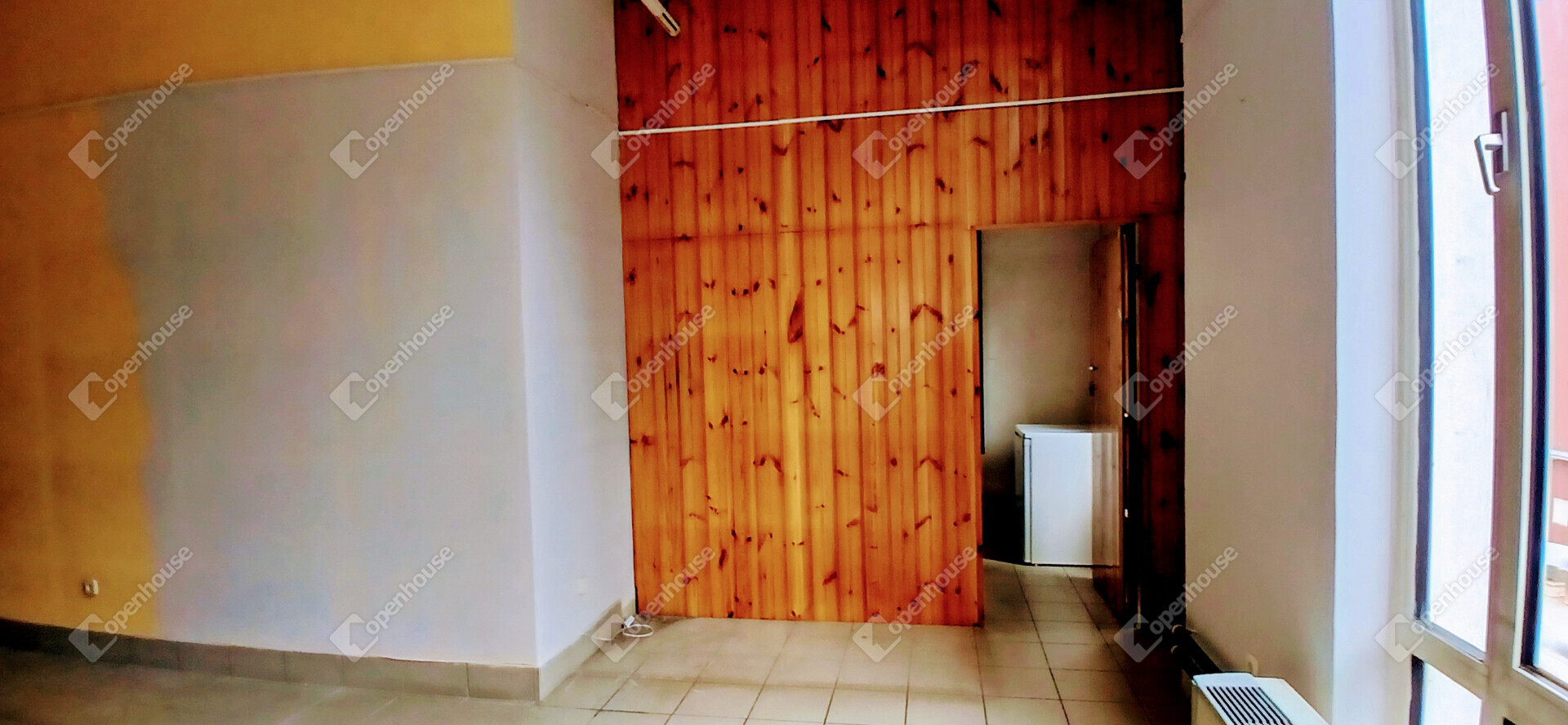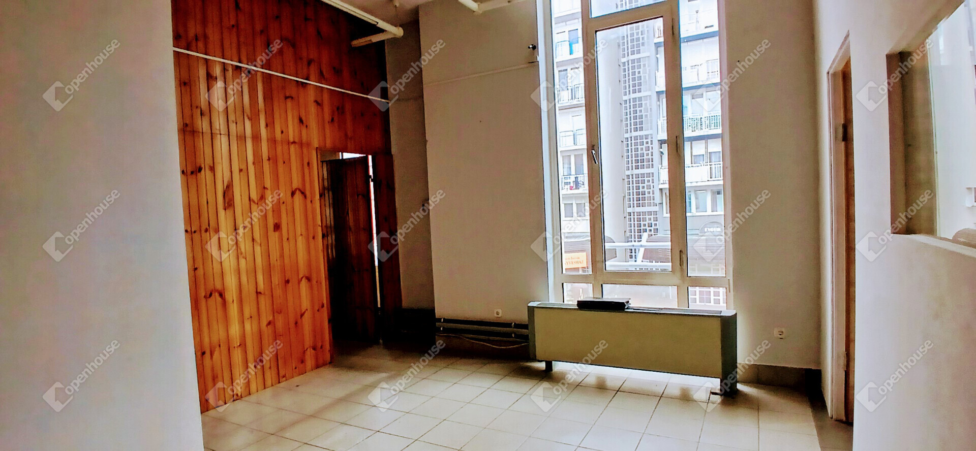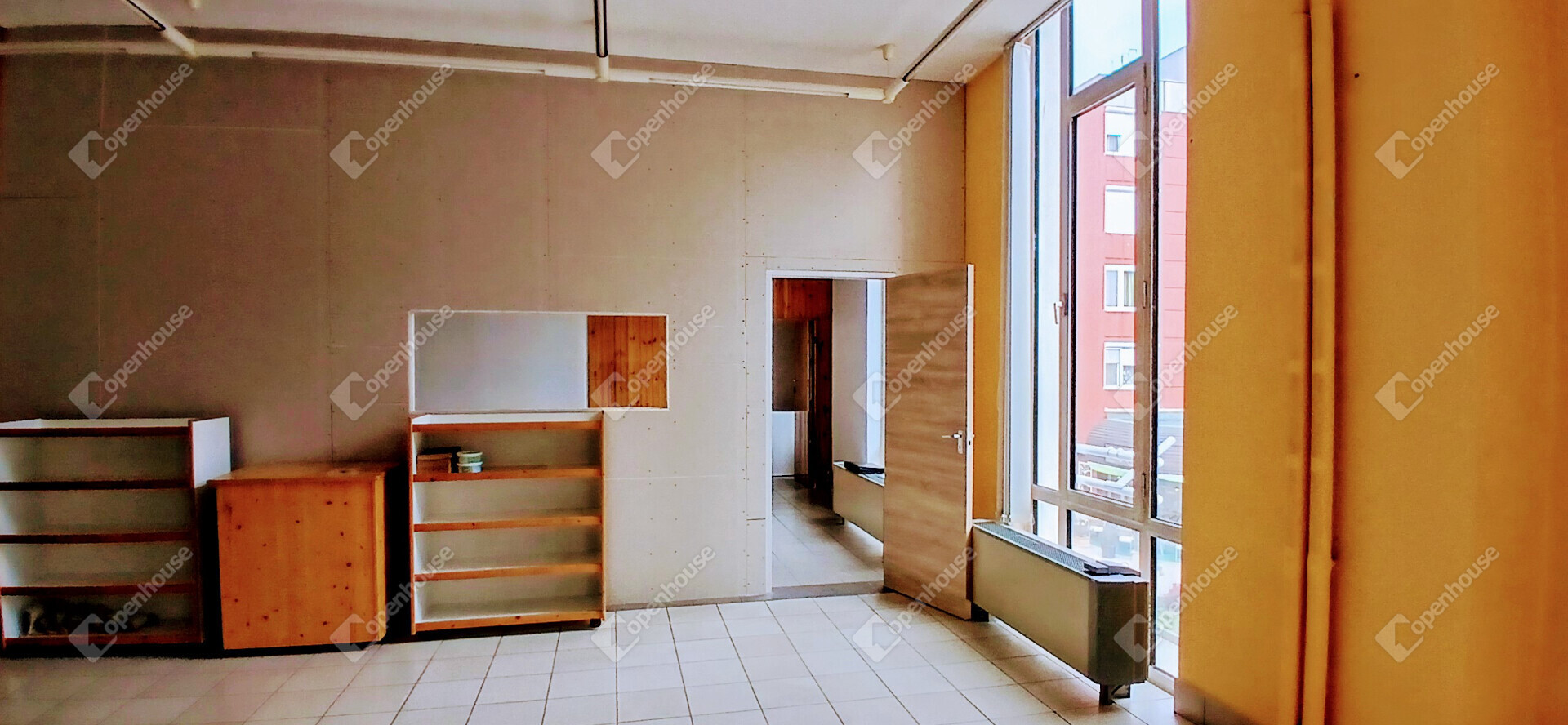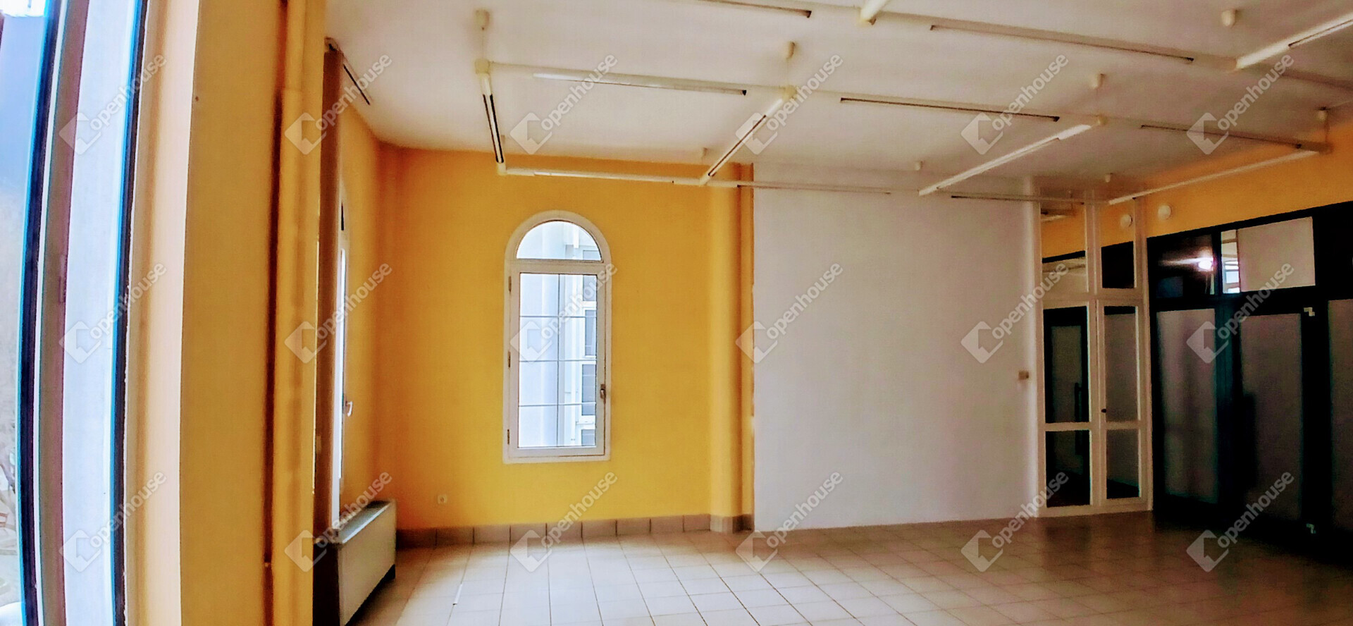 Az ingatlan az emeleti szinten helyezkedik el, hatalmas ablakfelületekkel, amelyek természetes fénnyel árasztják el a teret.