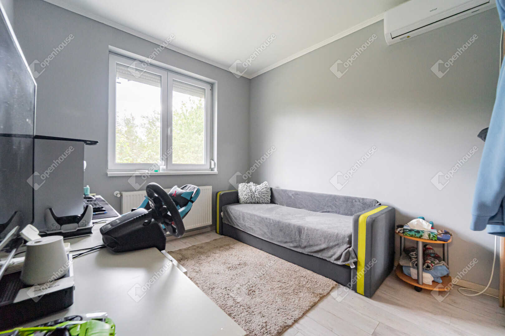 Az ingatlan műszaki felszereltsége is kiemelkedő: a 6,37 kW teljesítményű, szaldós elszámolású napelemes rendszernek köszönhetően a rezsiköltség rendkívül alacsony. Az erős, 3×25A elektromos kapacitás minden igényt kielégít, míg a minden szobában elhelyezett klímaberendezés gondoskodik az egész éves kényelemről.