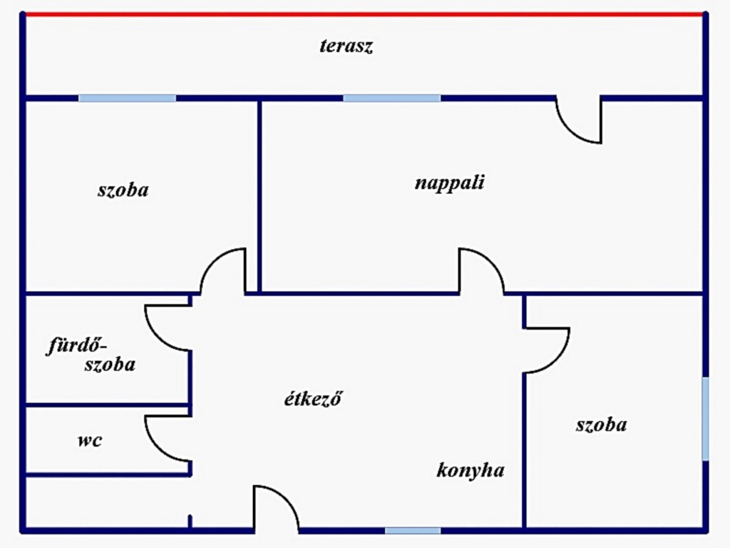 - nappali + 2 szoba