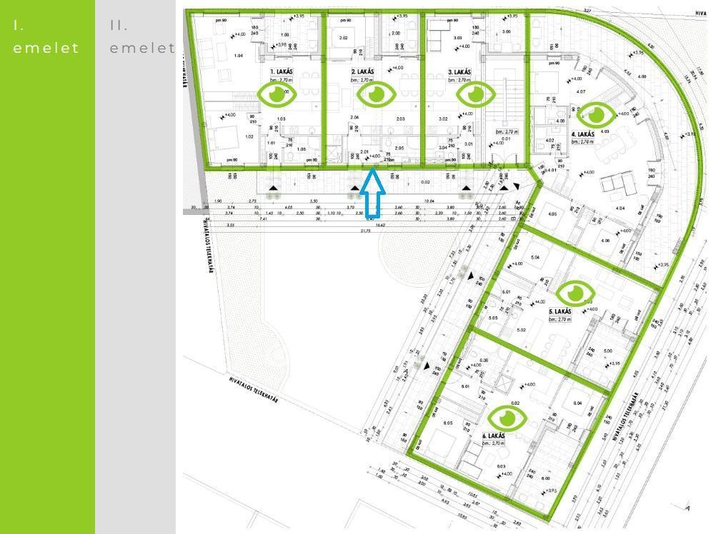 51,5 m²-es I. emeleti lakás, 6,9 m²-es terasszal.