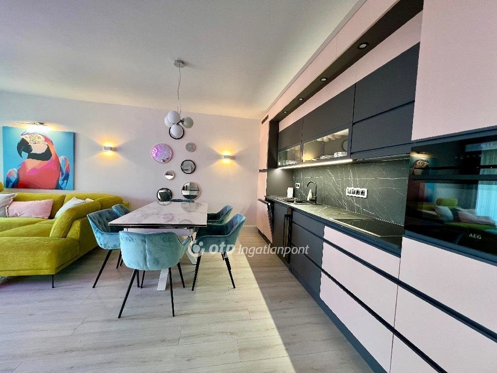 A lakás igényesen kialakított, kiváló állapotú, és teljes berendezéssel, egyedi gyártású bútorokkal kerül értékesítésre, így az új tulajdonos azonnal birtokba veheti.