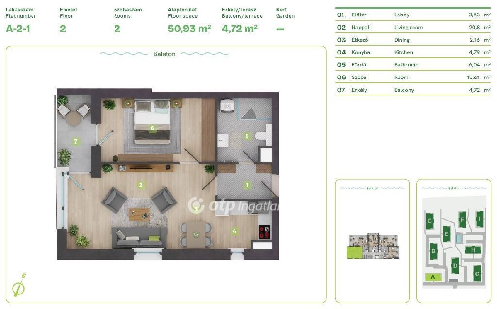 Balaton Déli part, Balatonszemes, közvetlen vízparti, 53 m2 lakás eladó. Az ingatlan a Balaton egyik legszebb vízparti lakóparkjában, természetes zöld környezetben található. A környezettudatosan épült, panorámás kilátást nyújtó, modern épületek esztétikailag és a fenntarthatóság szempontjából is kiemelkedőek, egyszerre biztosítják a kényelmes otthont és a balatoni életstílust. A különböző lakástípusok lehetőséget adnak arra, hogy minden lakó megtalálja a számára tökéletes otthont, akár az Otthon Start Hitelprogram keretében is. A földszinti lakások terasszal és kertkapcsolattal rendelkeznek, az épületek felső emeletén penthouse lakás került kialakításra. Ehhez az 51 m2-es 2. emeleti lakáshoz kis tároló és egy 5 m2-es erkély tartozik. A lakópark nem csak elhelyezkedése miatt egyedi, minden egyes lakás a legújabb intelligens technológiával, magas minőségű és igényes alapanyagokkal, prémium extrákkal kerül kialakításra. Egyszerre komfortosak és energiahatékonyak: elektromos redőnyök, szúnyogháló, egyedileg vezérelhető hőszivattyús, fan-coilos hűtési és fűtési rendszer, okosotthon rendszer, beléptető rendszer, riasztórendszer. Az ingatlan értékét növelik a következő szolgáltatások: a területen kialakított gondnoki, üzemeltetési iroda; zöldterületbe illesztett játszótér; zárt, privát vízpart több, mint 130 méteren; partmenti stég; közel 120 m2 vízfelületű strandmedence 16 m2-es gyermekpancsolóval; automata öntözőhálózat a lakóépületek közötti zöldfelületek öntözésére. OTP Ingatlanpont és Pénzügyi Pont irodánk teljeskörű támogatást nyújt az ingatlan kiválasztásával, megvételével, biztosításával és finanszírozásával, akár egyedi kedvezményes hitelekkel, befektetési lehetőségekkel kapcsolatban is. Bővebb információért keressen telefonon!