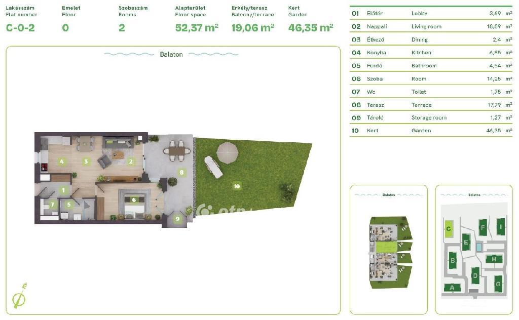 Balaton Déli part, Balatonszemes, közvetlen vízparti, 61 m2 lakás eladó. Az ingatlan a Balaton egyik legszebb vízparti lakóparkjában, természetes zöld környezetben található. A környezettudatosan épült, panorámás kilátást nyújtó, modern épületek esztétikailag és a fenntarthatóság szempontjából is kiemelkedőek, egyszerre biztosítják a kényelmes otthont és a balatoni életstílust. A különböző lakástípusok lehetőséget adnak arra, hogy minden lakó megtalálja a számára tökéletes otthont, akár az Otthon Start Hitelprogram keretében is. A földszinti lakások terasszal és kertkapcsolattal rendelkeznek, az épületek felső emeletén penthouse lakás került kialakításra. Ehhez az 52 m2-es földszinti lakáshoz kis tároló, 18 m2 terasz és 46 m2 saját kert tartozik. A lakópark nem csak elhelyezkedése miatt egyedi, minden egyes lakás a legújabb intelligens technológiával, magas minőségű és igényes alapanyagokkal, prémium extrákkal kerül kialakításra. Egyszerre komfortosak és energiahatékonyak: elektromos redőnyök, szúnyogháló, egyedileg vezérelhető hőszivattyús, fan-coilos hűtési és fűtési rendszer, okosotthon rendszer, beléptető rendszer, riasztórendszer. Az ingatlan értékét növelik a következő szolgáltatások: a területen kialakított gondnoki, üzemeltetési iroda; zöldterületbe illesztett játszótér; zárt, privát vízpart több, mint 130 méteren; partmenti stég; közel 120 m2 vízfelületű strandmedence 16 m2-es gyermekpancsolóval; automata öntözőhálózat a lakóépületek közötti zöldfelületek öntözésére. OTP Ingatlanpont és Pénzügyi Pont irodánk teljeskörű támogatást nyújt az ingatlan kiválasztásával, megvételével, biztosításával és finanszírozásával, akár egyedi kedvezményes hitelekkel, befektetési lehetőségekkel kapcsolatban is. Bővebb információért keressen telefonon!