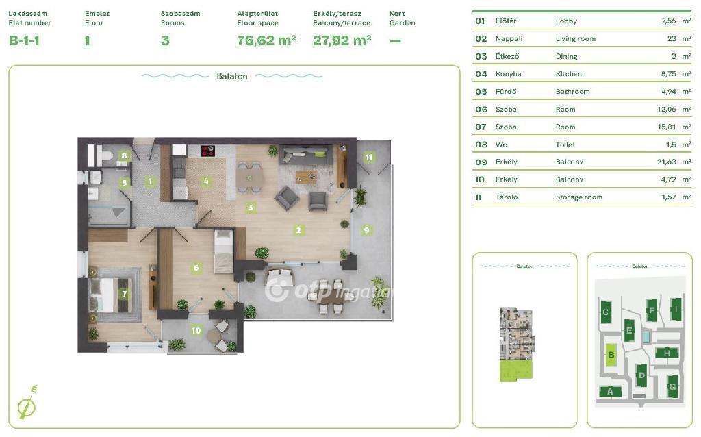 Balaton Déli part, Balatonszemes, közvetlen vízparti, 90 m2 lakás eladó. Az ingatlan a Balaton egyik legszebb vízparti lakóparkjában, természetes zöld környezetben található. A környezettudatosan épült, panorámás kilátást nyújtó, modern épületek esztétikailag és a fenntarthatóság szempontjából is kiemelkedőek, egyszerre biztosítják a kényelmes otthont és a balatoni életstílust. A különböző lakástípusok lehetőséget adnak arra, hogy minden lakó megtalálja a számára tökéletes otthont, akár az Otthon Start Hitelprogram keretében is. A földszinti lakások terasszal és kertkapcsolattal rendelkeznek, az épületek felső emeletén penthouse lakás került kialakításra. Ehhez a 77 m2-es 1. emeleti lakáshoz kis tároló és két, összesen 26 m2 erkély tartozik. A lakópark nem csak elhelyezkedése miatt egyedi, minden egyes lakás a legújabb intelligens technológiával, magas minőségű és igényes alapanyagokkal, prémium extrákkal kerül kialakításra. Egyszerre komfortosak és energiahatékonyak: elektromos redőnyök, szúnyogháló, egyedileg vezérelhető hőszivattyús, fan-coilos hűtési és fűtési rendszer, okosotthon rendszer, beléptető rendszer, riasztórendszer. Az ingatlan értékét növelik a következő szolgáltatások: a területen kialakított gondnoki, üzemeltetési iroda; zöldterületbe illesztett játszótér; zárt, privát vízpart több, mint 130 méteren; partmenti stég; közel 120 m2 vízfelületű strandmedence 16 m2-es gyermekpancsolóval; automata öntözőhálózat a lakóépületek közötti zöldfelületek öntözésére. OTP Ingatlanpont és Pénzügyi Pont irodánk teljeskörű támogatást nyújt az ingatlan kiválasztásával, megvételével, biztosításával és finanszírozásával, akár egyedi kedvezményes hitelekkel, befektetési lehetőségekkel kapcsolatban is. Bővebb információért keressen telefonon! M315914