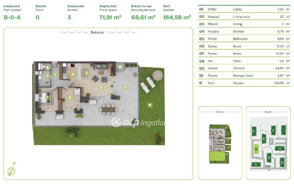 Balaton Déli part, Balatonszemes, közvetlen vízparti, 106 m2 lakás eladó. Az ingatlan a Balaton egyik legszebb vízparti lakóparkjában, természetes zöld környezetben található. A környezettudatosan épült, panorámás kilátást nyújtó, modern épületek esztétikailag és a fenntarthatóság szempontjából is kiemelkedőek, egyszerre biztosítják a kényelmes otthont és a balatoni életstílust. A különböző lakástípusok lehetőséget adnak arra, hogy minden lakó megtalálja a számára tökéletes otthont, akár az Otthon Start Hitelprogram keretében is. A földszinti lakások terasszal és kertkapcsolattal rendelkeznek, az épületek felső emeletén penthouse lakás került kialakításra. Ehhez a 72 m2-es földszinti lakáshoz kis tároló, 68 m2 terasz és 155 m2 saját kert tartozik. A lakópark nem csak elhelyezkedése miatt egyedi, minden egyes lakás a legújabb intelligens technológiával, magas minőségű és igényes alapanyagokkal, prémium extrákkal kerül kialakításra. Egyszerre komfortosak és energiahatékonyak: elektromos redőnyök, szúnyogháló, egyedileg vezérelhető hőszivattyús, fan-coilos hűtési és fűtési rendszer, okosotthon rendszer, beléptető rendszer, riasztórendszer. Az ingatlan értékét növelik a következő szolgáltatások: a területen kialakított gondnoki, üzemeltetési iroda; zöldterületbe illesztett játszótér; zárt, privát vízpart több, mint 130 méteren; partmenti stég; közel 120 m2 vízfelületű strandmedence 16 m2-es gyermekpancsolóval; automata öntözőhálózat a lakóépületek közötti zöldfelületek öntözésére. OTP Ingatlanpont és Pénzügyi Pont irodánk teljeskörű támogatást nyújt az ingatlan kiválasztásával, megvételével, biztosításával és finanszírozásával, akár egyedi kedvezményes hitelekkel, befektetési lehetőségekkel kapcsolatban is. Bővebb információért keressen telefonon! M315913