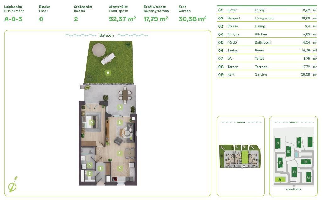 Balaton Déli part, Balatonszemes, közvetlen vízparti, 61 m2 lakás eladó. Az ingatlan a Balaton egyik legszebb vízparti lakóparkjában, természetes zöld környezetben található. A környezettudatosan épült, panorámás kilátást nyújtó, modern épületek esztétikailag és a fenntarthatóság szempontjából is kiemelkedőek, egyszerre biztosítják a kényelmes otthont és a balatoni életstílust. A különböző lakástípusok lehetőséget adnak arra, hogy minden lakó megtalálja a számára tökéletes otthont, akár az Otthon Start Hitelprogram keretében is. A földszinti lakások terasszal és kertkapcsolattal rendelkeznek, az épületek felső emeletén penthouse lakás került kialakításra. Ehhez az 52 m2-es földszinti lakáshoz 18 m2 terasz és 30 m2 saját kert tartozik. A lakópark nem csak elhelyezkedése miatt egyedi, minden egyes lakás a legújabb intelligens technológiával, magas minőségű és igényes alapanyagokkal, prémium extrákkal kerül kialakításra. Egyszerre komfortosak és energiahatékonyak: elektromos redőnyök, szúnyogháló, egyedileg vezérelhető hőszivattyús, fan-coilos hűtési és fűtési rendszer, okosotthon rendszer, beléptető rendszer, riasztórendszer. Az ingatlan értékét növelik a következő szolgáltatások: a területen kialakított gondnoki, üzemeltetési iroda; zöldterületbe illesztett játszótér; zárt, privát vízpart több, mint 130 méteren; partmenti stég; közel 120 m2 vízfelületű strandmedence 16 m2-es gyermekpancsolóval; automata öntözőhálózat a lakóépületek közötti zöldfelületek öntözésére. OTP Ingatlanpont és Pénzügyi Pont irodánk teljeskörű támogatást nyújt az ingatlan kiválasztásával, megvételével, biztosításával és finanszírozásával, akár egyedi kedvezményes hitelekkel, befektetési lehetőségekkel kapcsolatban is. Bővebb információért keressen telefonon!