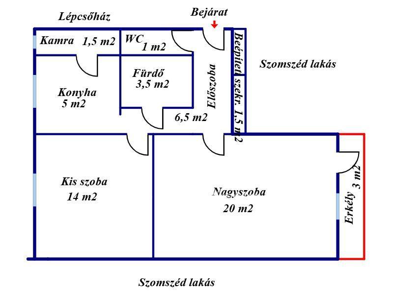 A lakásban 2 szoba,konyha található, a fürdő és a WC pedig külön helyiségben van.
