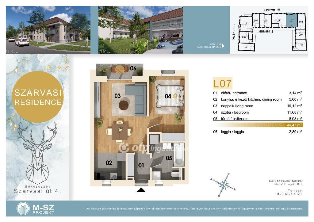 Békés vármegye, Békéscsaba belvárosában, a Lázár utca - Szarvasi út sarkán épülő modern, 10 lakásos, új építésű társasház (Szarvasi Residence) lakásait kínálom megvételre. Az ingatlan emeleti része változatos méretű (28 - 65 m2 alapterületű) lakásokat kínál leendő tulajdonosai számára. A földszinten utcafronti irodák is helyet kaptak. A társasházhoz a belső udvaron, garázsok, fedett és nyitott gépkocsibeállók is épülnek, így mindenki megtalálhatja a számára legkényelmesebb parkolási lehetőséget.