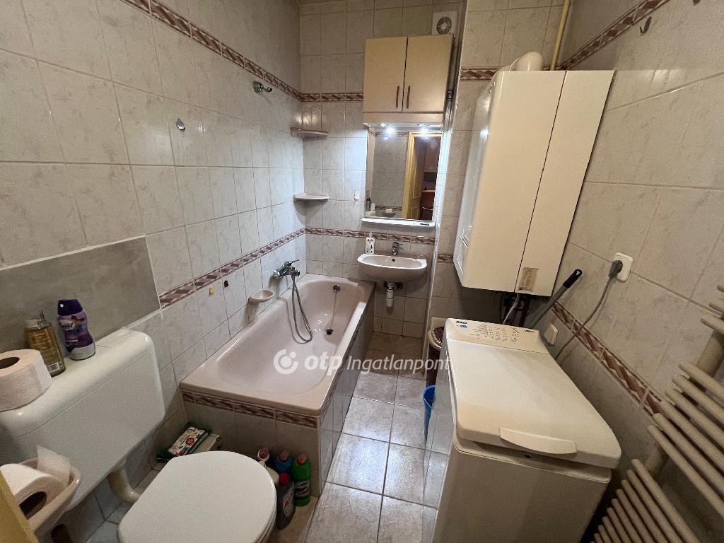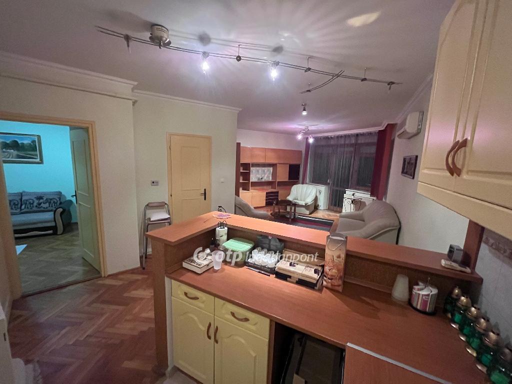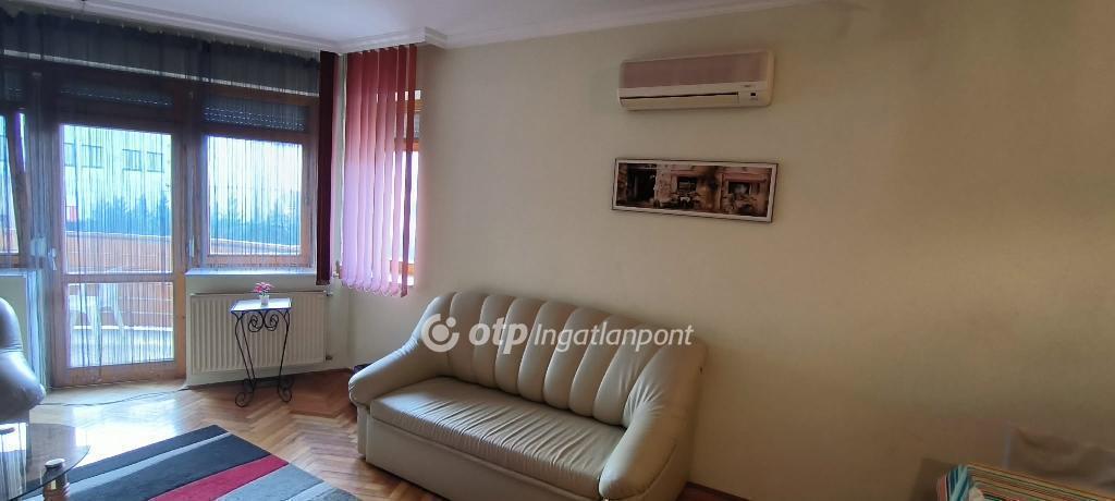 A lakás elrendezése praktikus: tágas nappali, étkező, konyha, külön hálószoba beépített gardróbbal, kádas fürdőszoba WC-vel, előtér beépített szekrénnyel, valamint egy íves kialakítású 6 nm-es erkély. A fűtést kombi gázkazán biztosítja radiátorokon keresztül, az egész éves komfortért hűtő-fűtő klíma áll rendelkezésre. A redőnyözött, fa nyílászárók újszerű állapotúak.