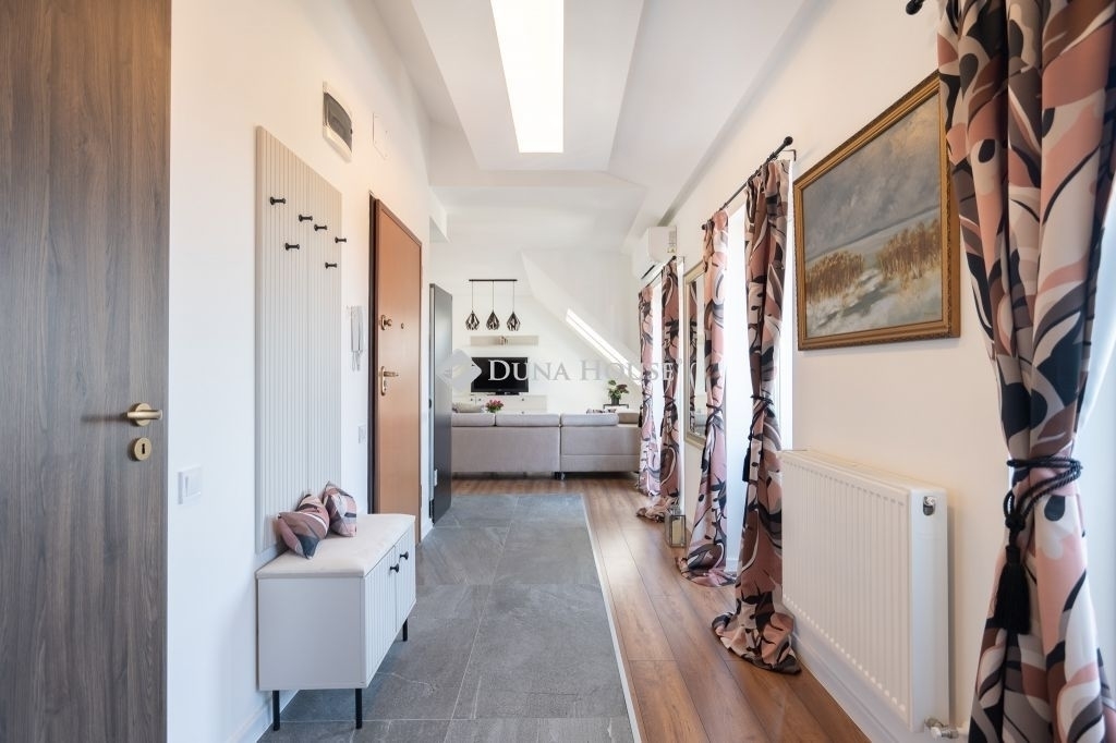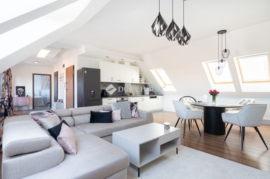 A bruttó 77 nm-es lakás egy 10 éve épült lakópark legújabb, 2022-ben átadott épületében található. A tágas amerikai konyhás nappali, a két külön nyíló hálószoba és a 14 m²-es terasz igazán kényelmessé és élhetővé teszik ezt az otthont. A fűtést korszerű fali gázkazán, a hőleadást radiátorok biztosítják.