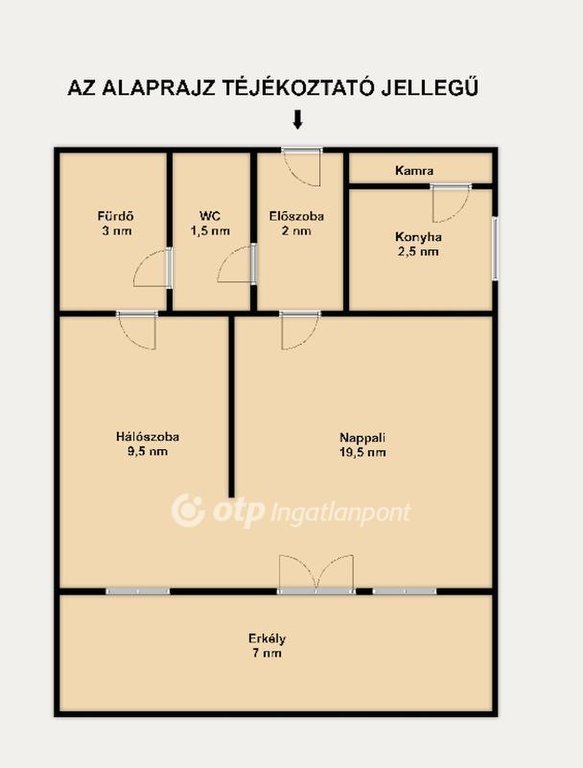 - nappali, külön hálószoba, ablakos konyha, előszoba