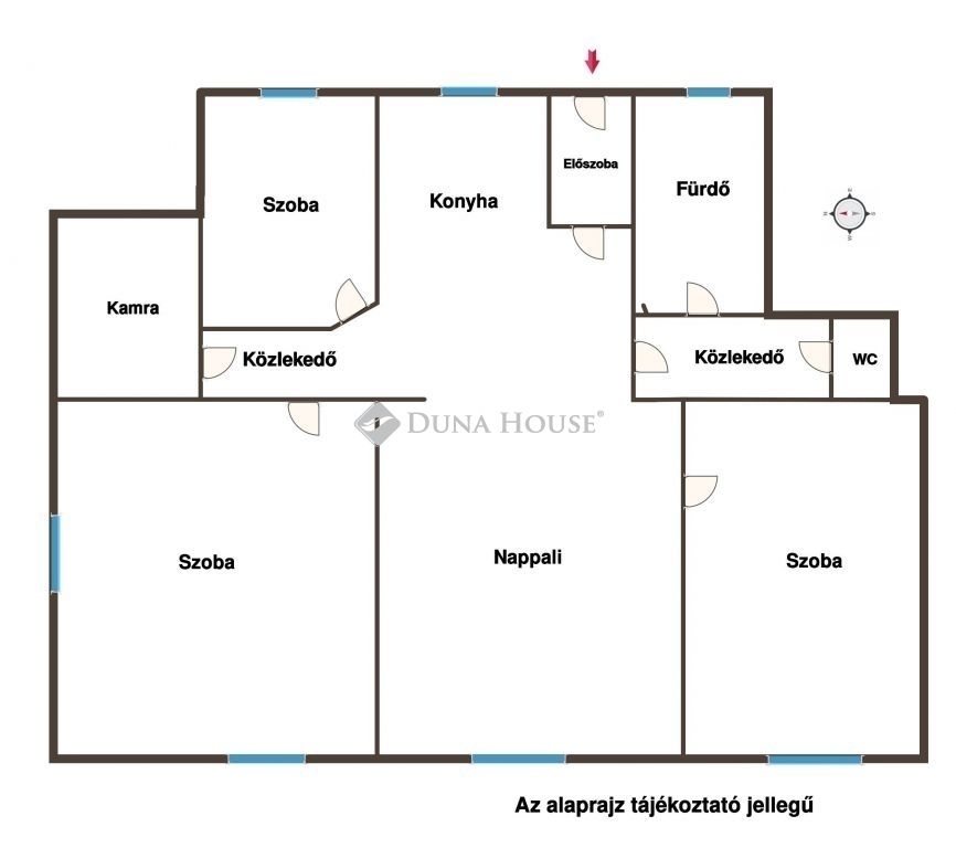 A lakás elrendezése rendkívül praktikus és kényelmes életteret biztosít.