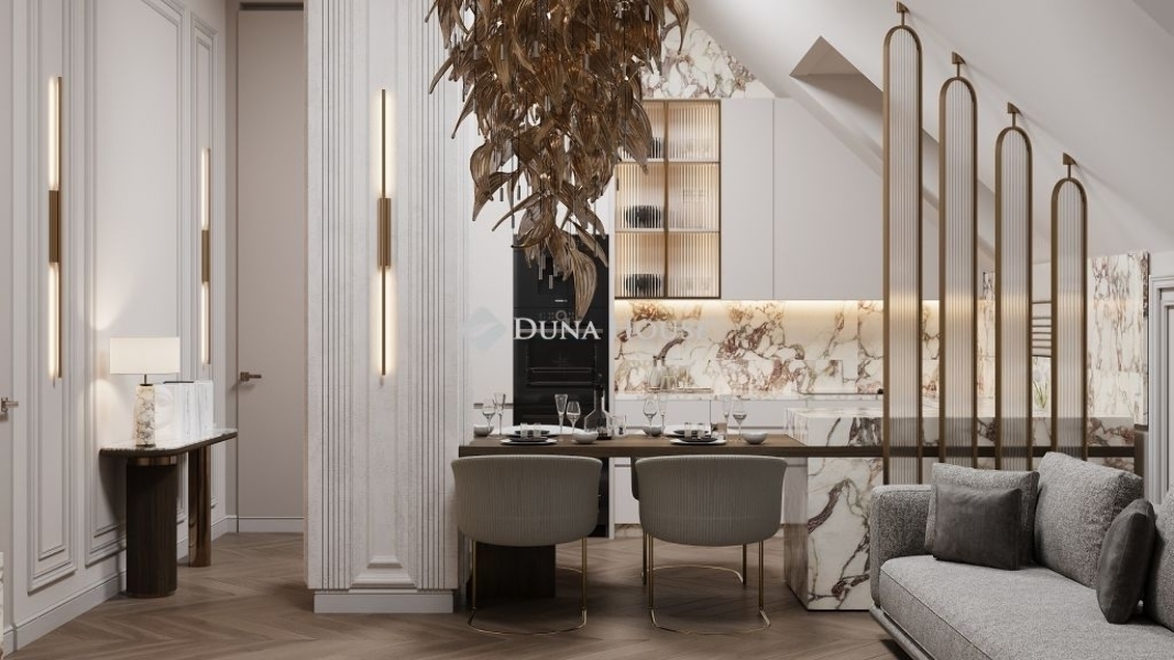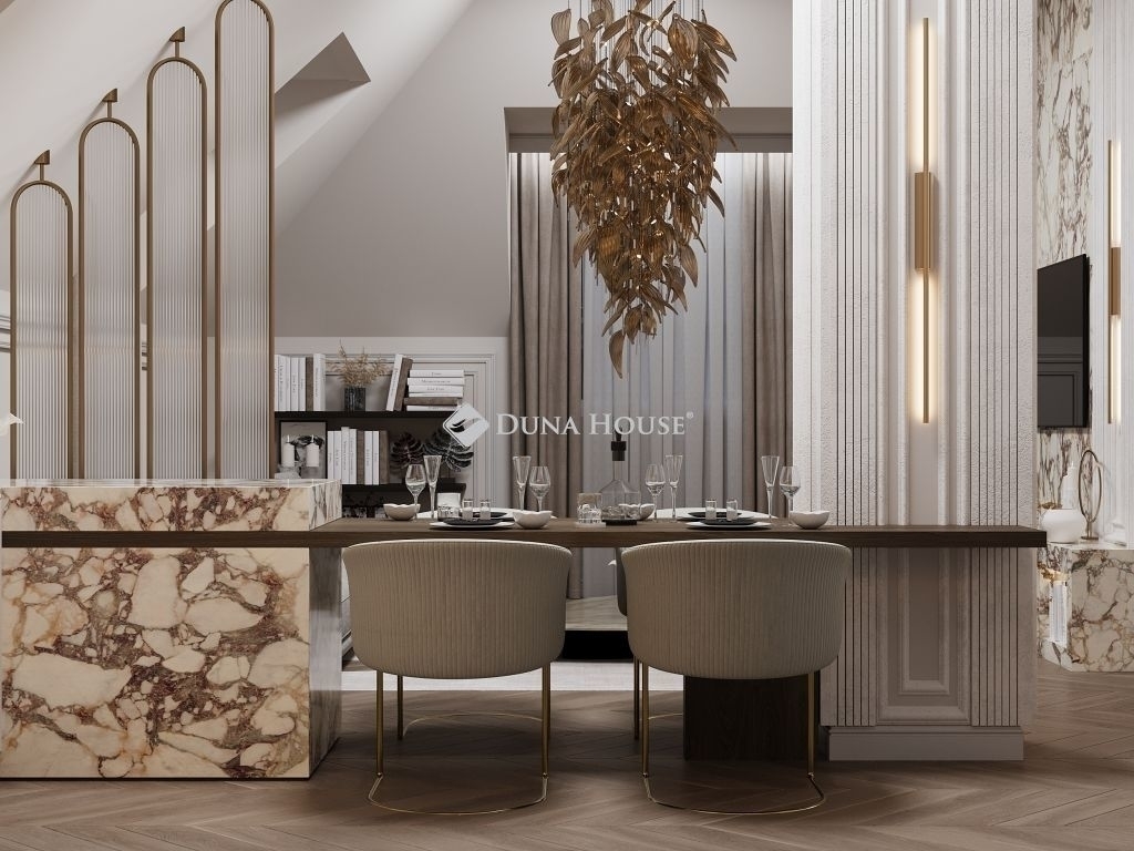 Eladó luxuslakás Budapest szívében, - páratlan panoráma, örök elegancia, budapesti presztízs!!!Fedezze fel a főváros legexkluzívabb otthonát!Ahol a történelem, és a modern elegancia találkozik.Ez a különleges, prémium minőségben felújított luxuslakás közvetlenül a Parlamenttel szemben, a budai vár alatt helyezkedik el, páratlan kilátással, amely minden nap új élményt nyújt!A hatalmas, tágas, 60 nm-es teraszról elénk tárul Budapest ikonikus látképe: a Duna hullámai, a Lánchíd és a Parlament fenséges kupolája is - mindezt, a saját otthonából élvezheti, nap mint nap.A lakás belső tereit a legmagasabb minőségű anyagok, letisztult dizájn, és a gondosan megtervezett világítás teszik tökéletessé.A modern technológia és a klasszikus elegancia harmóniája garantálja, hogy ez az otthon egyszerre nyújt kényelmet, stílust és presztízst.Magyarország egyik legjobb, díjnyertes belső építésze által megálmodva, képviseltetve a város esszenciáját.Főbb jellemzői:- közvetlen panoráma a Parlamentre és a Dunára- tágas napfényes terek- hatalmas privát terasz- prémium anyaghasználat- designer belsőépítészeti megoldások- modern konyha- elegáns fürdőszoba- intelligens okos otthonrendszer- exkluzív lokáció- kiváló közlekedés- szolgáltatások a közelben- kisebb lakás 55 nm + nagyobb lakás 81,6 nm + 60 nm terasz panorámávalEz a lakás nem csupán ingatlan - életstílus, amely a luxus új szintjét képviseli, Budapest legszebb arcával!Amennyiben hirdetésem felkeltette érdeklődését, keressen bizalommal.Független, profi hitelügyintézéssel is állunk rendelkezésükre.Mutatásban rugalmasak vagyunk.A csatolt képek a belső építész által megálmodott látványtervek, további felhasználásuk tilos, és engedély köteles.Eladás esetén építtető teljesen készre építi, beleértve a teljes bútorzatot is. Hibás hirdetés bejelentése