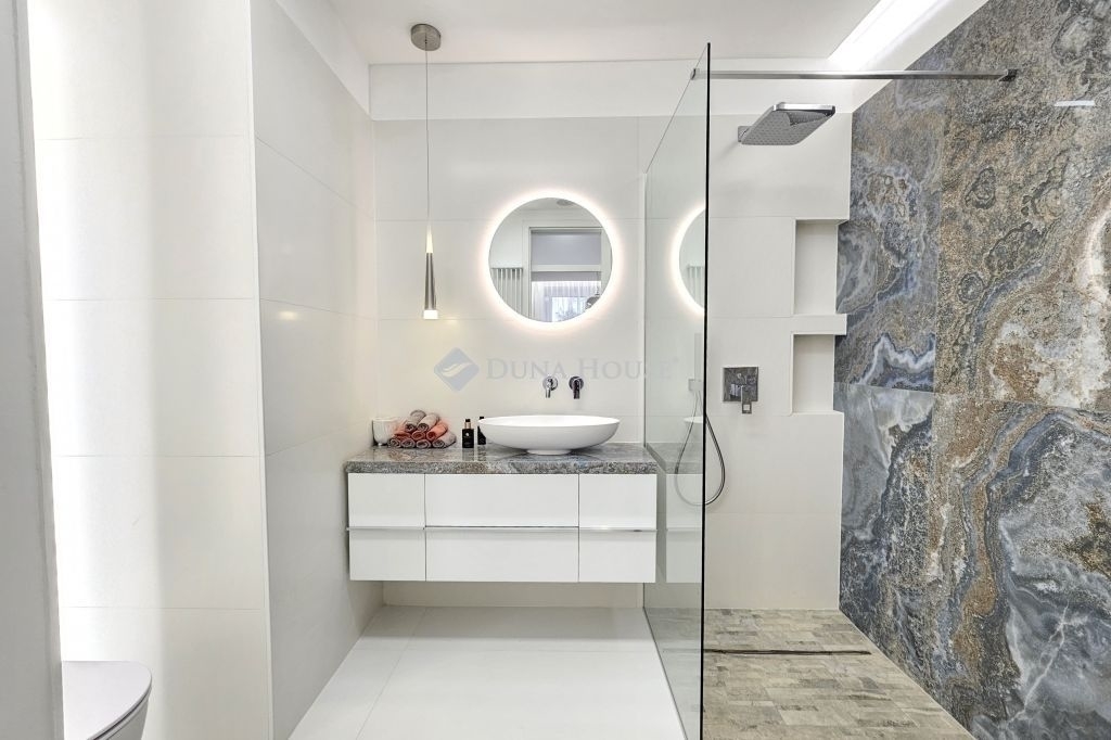 A felújítás során a lakást teljesen szétbontották: új alaprajz, új gépészet, új elektromos hálózat, új burkolatok és prémium nyílászárók kerültek beépítésre. Az eredmény egy modern, egylégterű, letisztult otthon, ahol minden részlet átgondolt.
